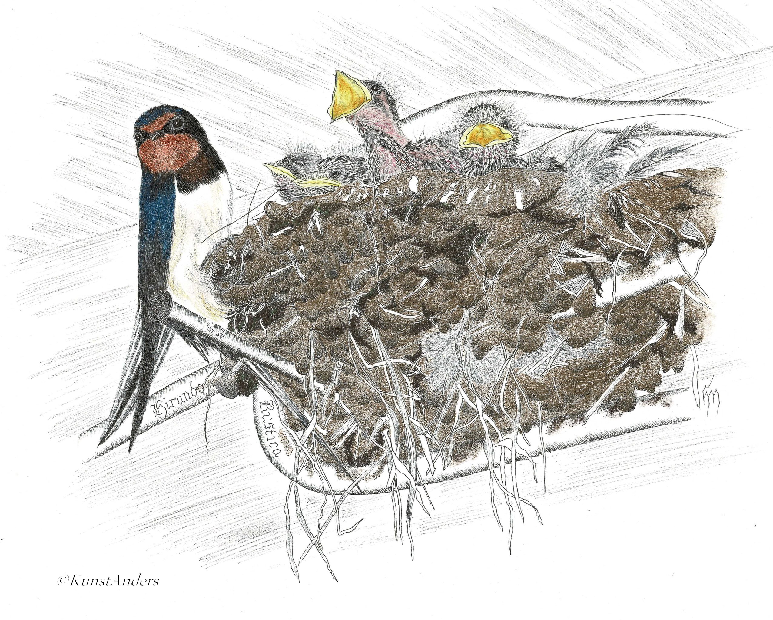 Nest Wildlife Dieren Natuur Vogels Pentekening Zwaluw Boerenzwaluw Kunstanders