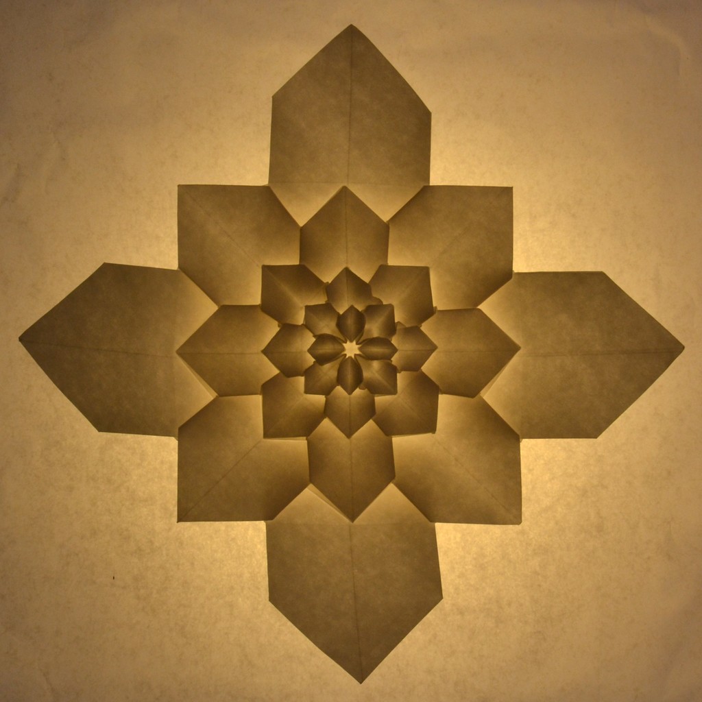 Het transparante papier met tegenlicht geeft de schoonheid van de zeven Bloemblaadjes duidelijk weer.