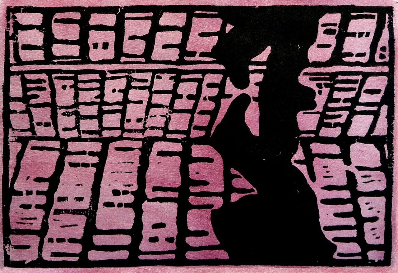 Zwart Rose Man Roze Legs Benen Cut Minimalistisch Pink Straat Lino Silhouet Schaduw Street Linosnede Klinkers Shadow Linoleumsnede Minimal Pavement 2019