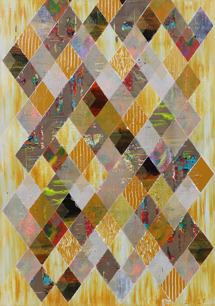 René Roovers In 1975 geboren te Nuland, provincie Brabant. Roovers is autodidact en laat zich zo min mogelijk beïnvloeden door andere kunstenaars. Dit om zo vrij mogelijk te kunnen werken. In zijn geometrisch geïnspireerde abstracte en half-abstracte schilderstukken probeert hij extra accenten aan te brengen door met reliëf te werken. Vormen, kleuren en contrasten fascineren hem. Zijn manier van werken: Het laag voor laag aanbrengen van "puzzelstukken" die moeten leiden naar een bevredigend eindresultaat. Zijn doel is: Het vasthouden van de aandacht en het op zoek gaan naar de intentie van het kunstwerk. Kunst zien heb ik van mijn vader. Kunst maken van mijn moeder.