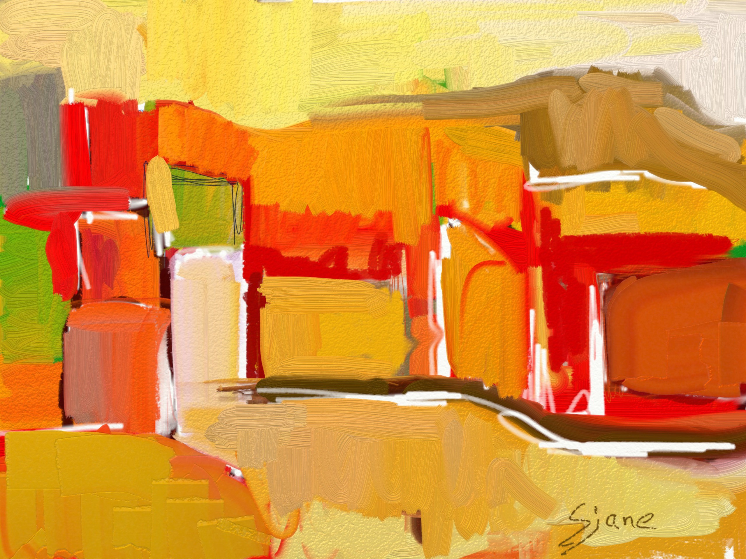Huizen Straat Abstract Landschap Geel Rood Oranje Warme Kleuren