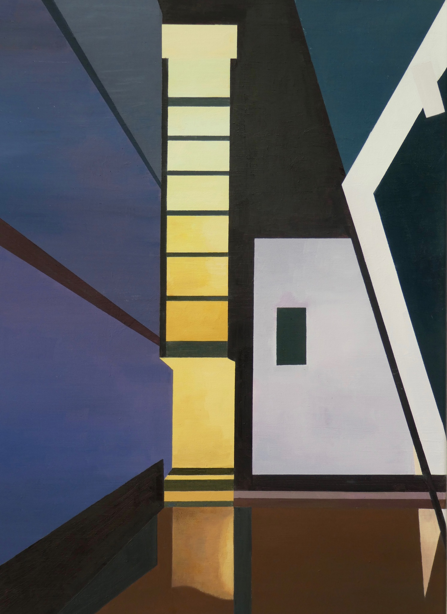 Abstract Geel Zwart Blauw Yellow Paars Blue Licht Geabstraheerd Oil Olieverf Doek Light Black Violet Of Raam Reflectie Space Muur Vloer Window Wall Interior Bruinrood