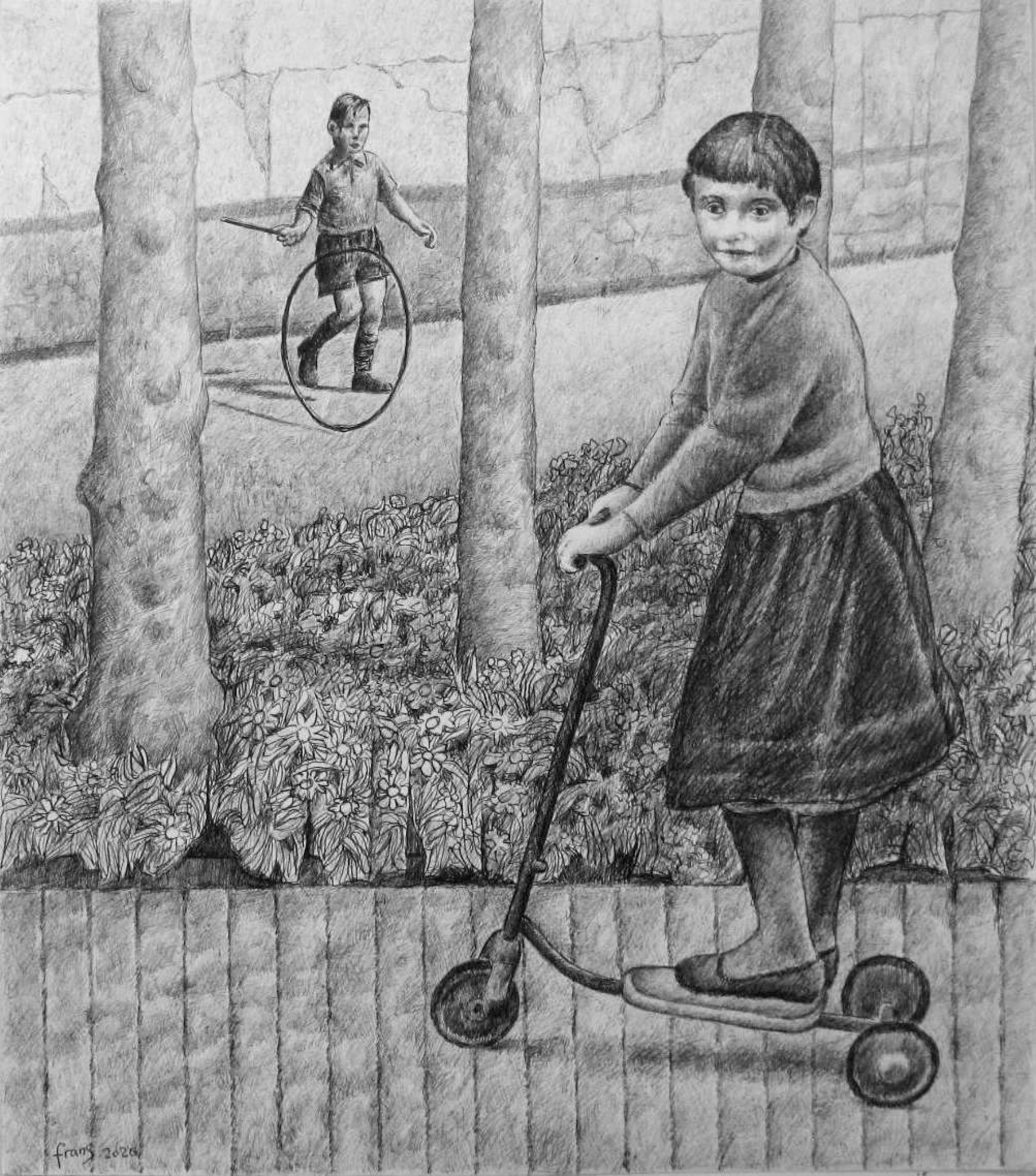 Werkt voornamelijk met Acrylverf, potlood en inkt. Is autodidakt.