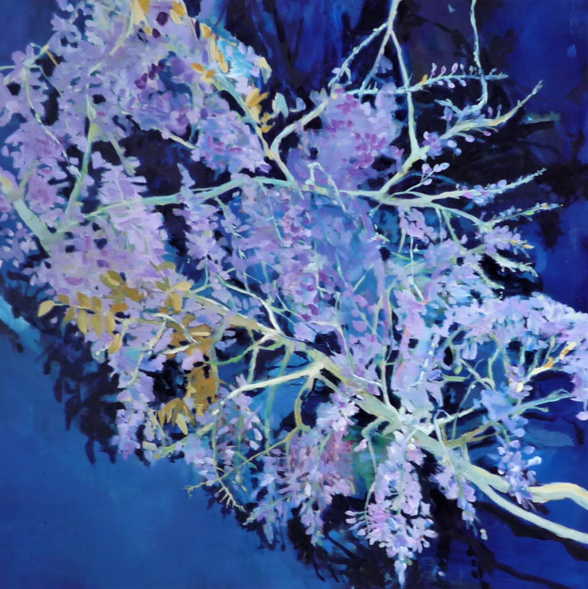 Schilderij Blauw Paars Art Water Tuin Olieverf Hedendaagse Kunst Natuur Plant Tak Lente Kleur Lila Voorjaar Flora Park Vreugde Groei Struik Contemporary