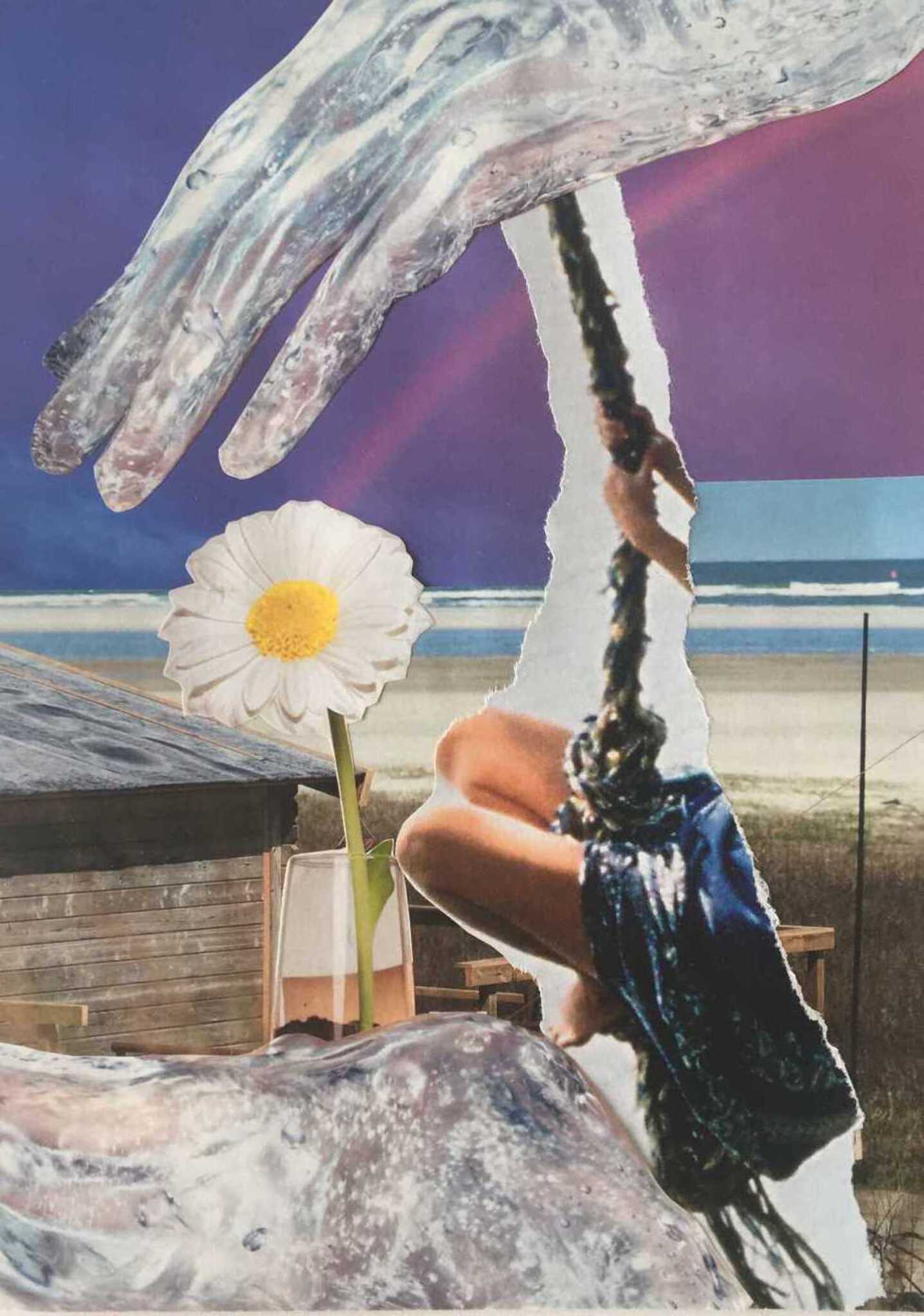 Surreeel Zee Strand Spiritueel Kleurig Vaas Water Regenboog Papier Hand Flow Verhalend Collage Touw Benen Papierkunst Positief Intuïtief Kunstenaar Huisje Bewegend Margriet Lijm Boodschap Schaar