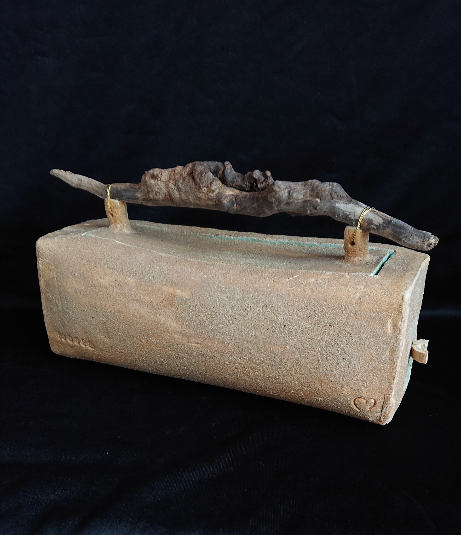 De verstopdoos heeft een deksel dat als slot fungeert voor de lade. Deze is gemaakt van witte chamotteklei met aan de buitenkant kleislib uit de rivier de IJssel en aan de binnenkant groen glans glazuur. De doos is gemaakt met de natte plak techniek, een uit 1 plak gevouwen vorm. Het houten handvat is gevonden vlakbij de vindplaats van de kleislib.