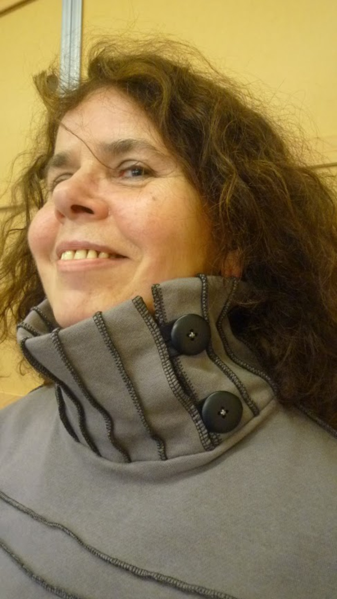 Col afgewerkt met zwarte locksteek, grijze katoenen joggingstof