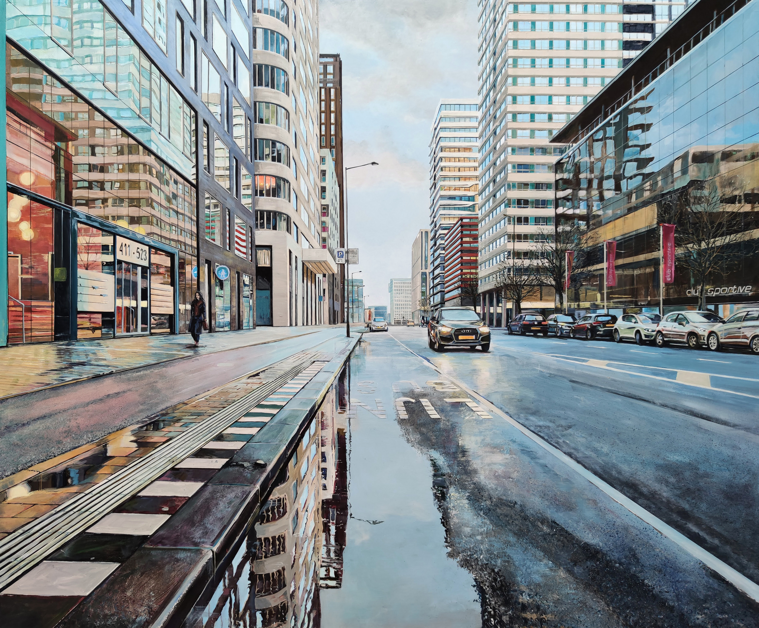 Ik schilder de stad: straten, gevels, etalages, interieurs.