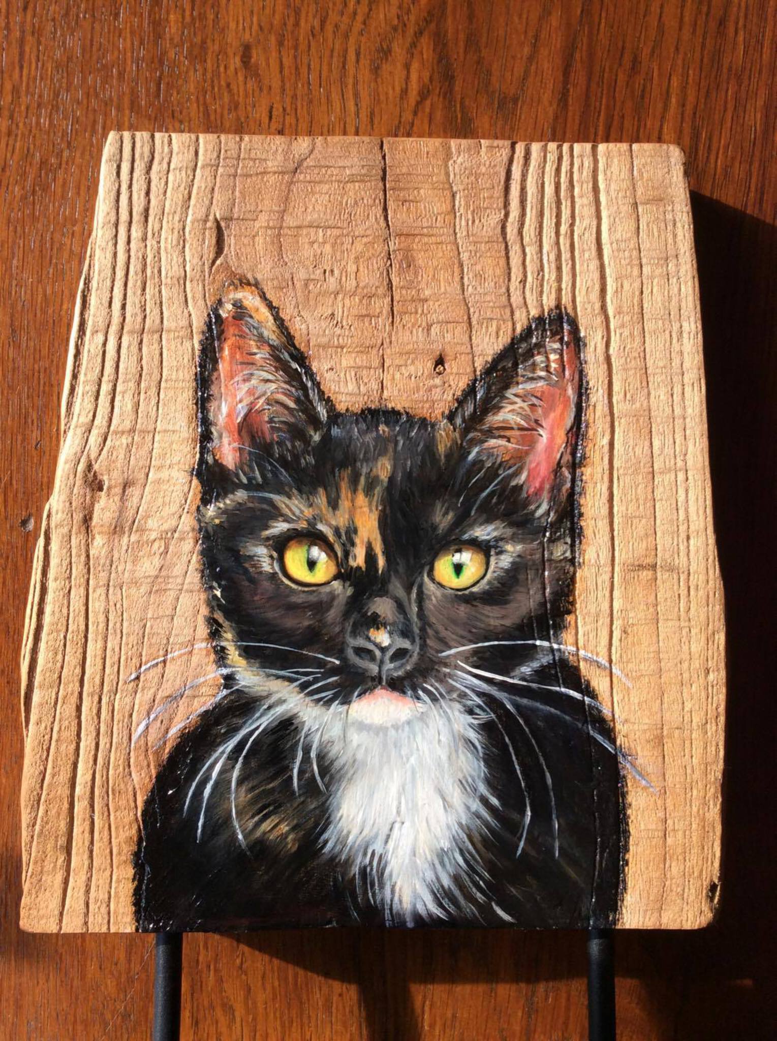 In opdracht geschilderd. Hoogte incl. ijzeren standaard 32 cm
