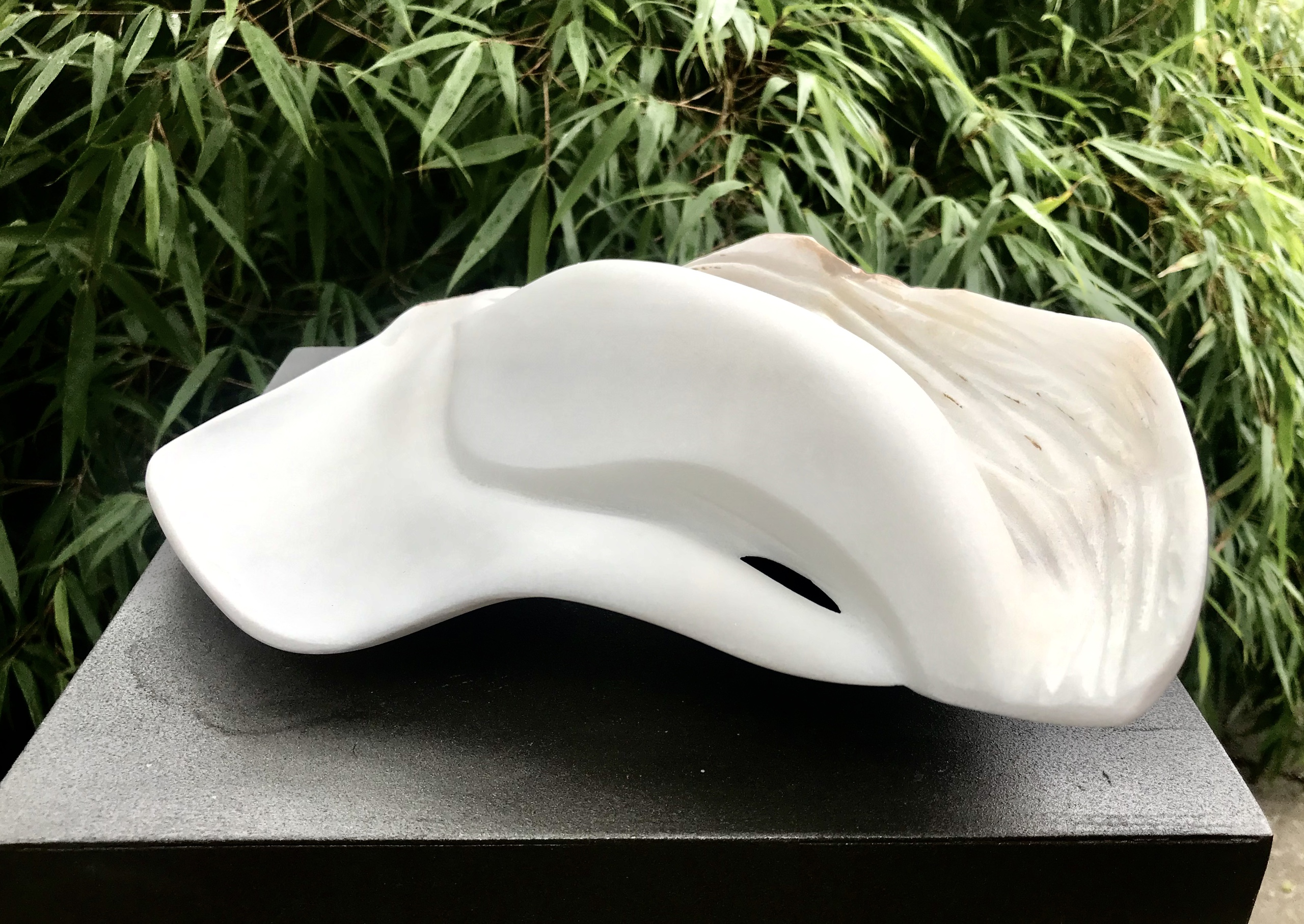 Een vrouwelijke wereld uit steen geboren. Mijn beelden dragen “het eeuwig vrouwelijke” in zich. Zij vertegenwoordigen mijn communicatie met de steen, de lijnen en structuren die zijn ontstaan door de tijden en de steen haar eigen taal geeft. Met name het samengaan van mijn innerlijke taal en die van de steen is één van de boeiende aspecten van het werken met steen: het bevrijden van een nieuwe wereld uit het eens zo vormeloze.