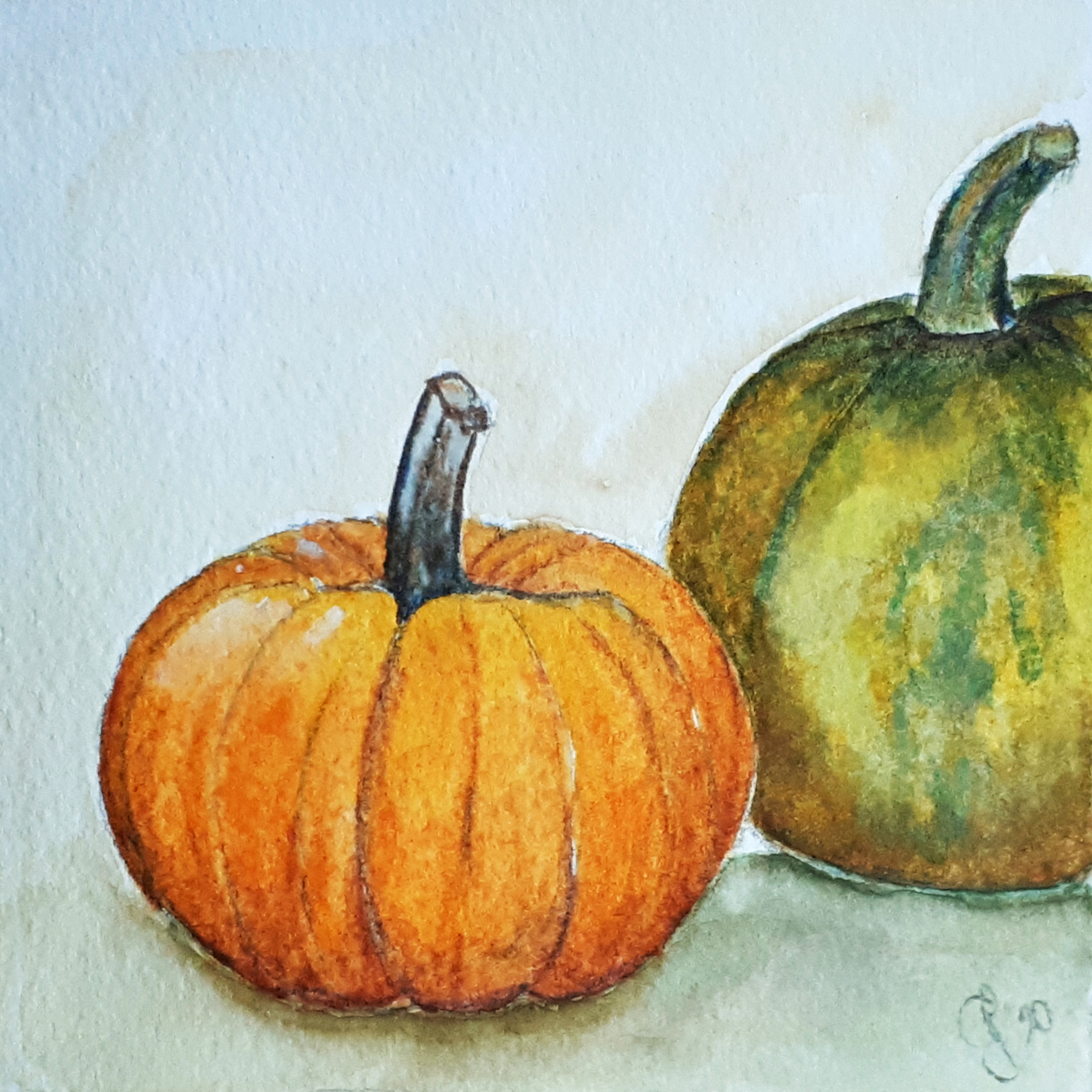 Pompoen Eetbaar Oranje Stilleven Herfst Natuur Kleur Waterverf Aquarel