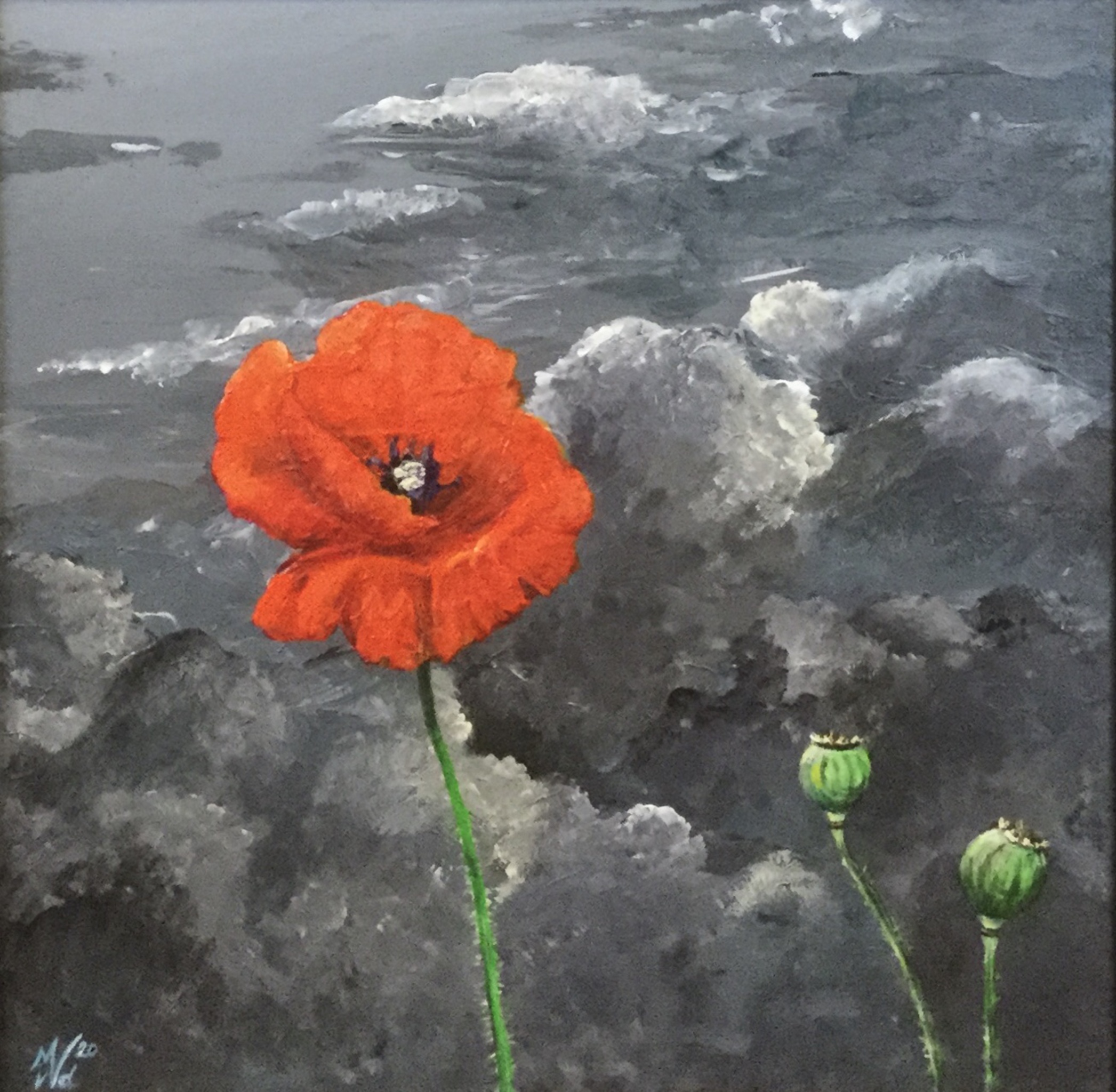 Figuratief Grijs Rood Klaproos Bloem