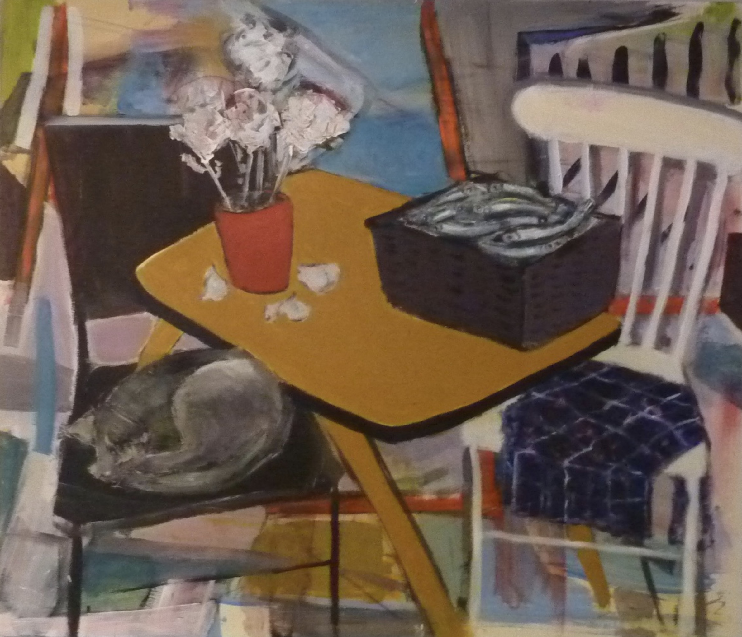 Marcel laat in zijn recente werk de andere weg zien die hij is ingeslagen. ,,In tegenstelling tot mijn eerdere werk, dat heel dicht bij de realiteit lag, vertaal ik nu wat ik waarneem naar mijn eigen werkelijkheid. Het is eigenlijk een vereenvoudigen van die realiteit, tot wat voor mij de essentie is. In die zoektocht spelen kleur en compositie een hoofdrol’.
