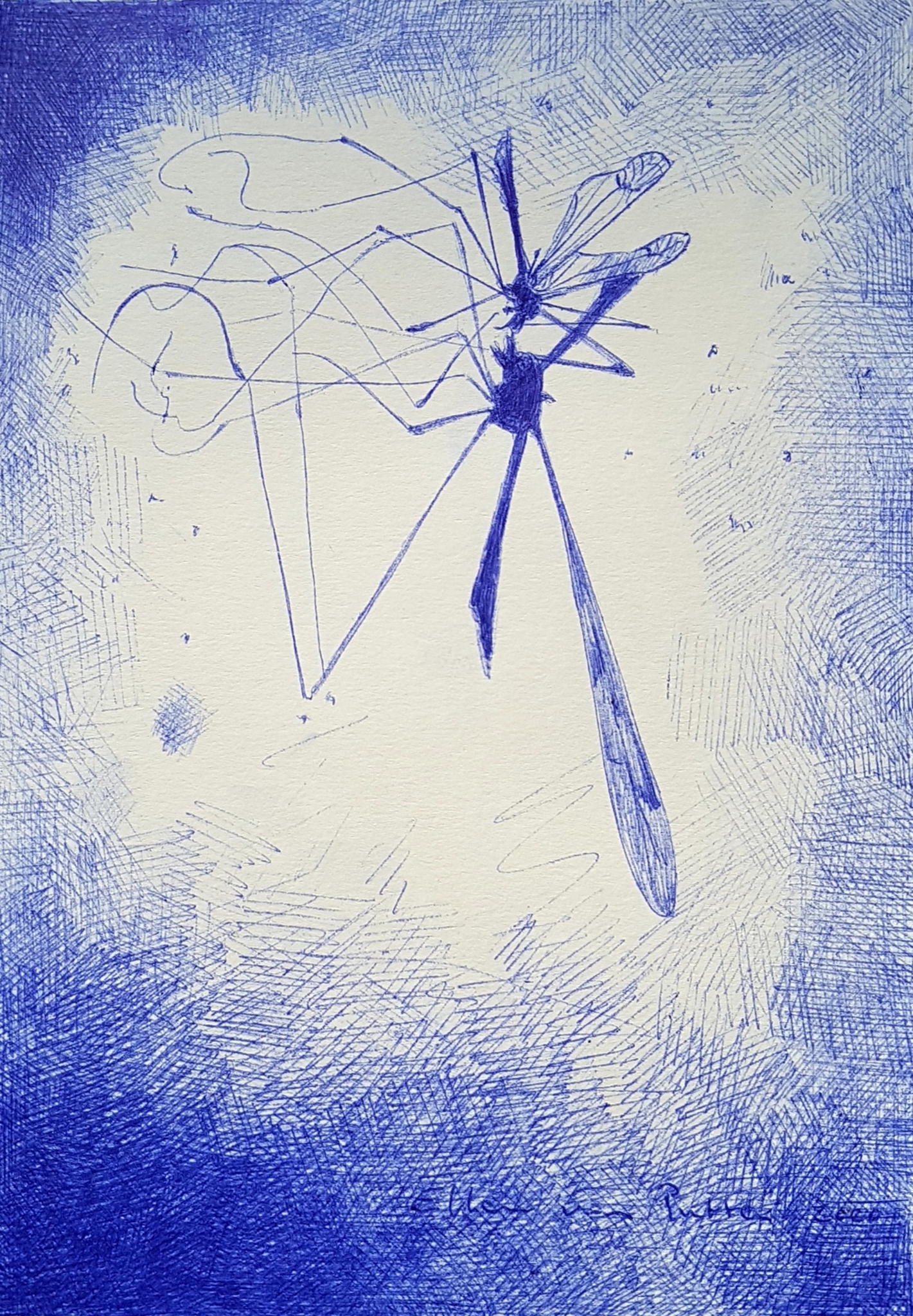 Blauw Blue Tekening Inkt Insect Fly Spotlight Avondzon Crane Langpootmug Bicpen Gecrashed