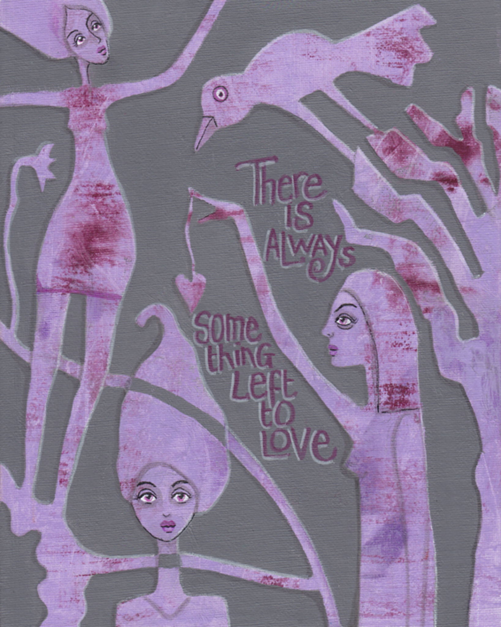 Schilderij Grijs Acryl Vogel Paars Spiritueel Vrouw Klein Liefde Canvas Figuur Kunst Love Meisjes Surreëel Geschenk Intuitief Canvasboard Kleurrijke Spreuk Inspirerend Quote Handmade Connectie Kunstcadeau