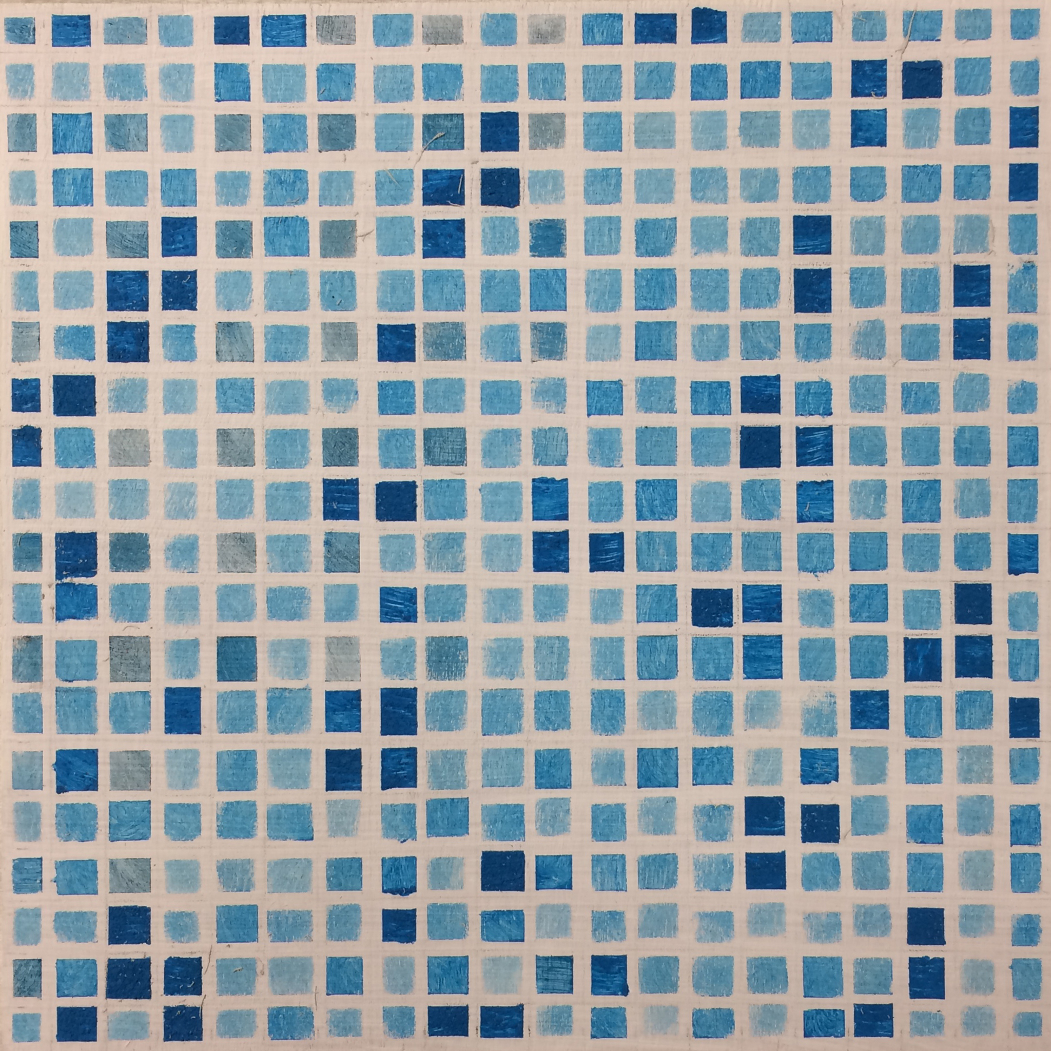 Thema: Chaos (Geometrische Chaos) Mijn kunst is beïnvloedt door de moderne wiskundige en wetenschappelijke benadering van het begrip complexe orde van de natuur. Met name heb ik me verdiept in de Chaos theorie en de fractal geometrie. Ik ben geen wiskundige, en ik gebruik geen wiskundige formules. De ideeën van de Chaos theorie en fractal geometrie leiden tot de ontwikkeling van de composities in mijn werk. Ik gebruik driehoeken,vierkanten en cirkels in mijn schilderijen, maar in mijn huidige serie, geoChao richt ik me alleen op de vierkanten en de verhoudingen tussen de vierkanten. Ik ontwikkel mijn composities door kleine vierkantjes op grote te zetten of grote op kleine te zetten. Het gaat om de onderlinge verhoudingen tussen de vierkanten. Ik laat de methode die ik kies de compositi
