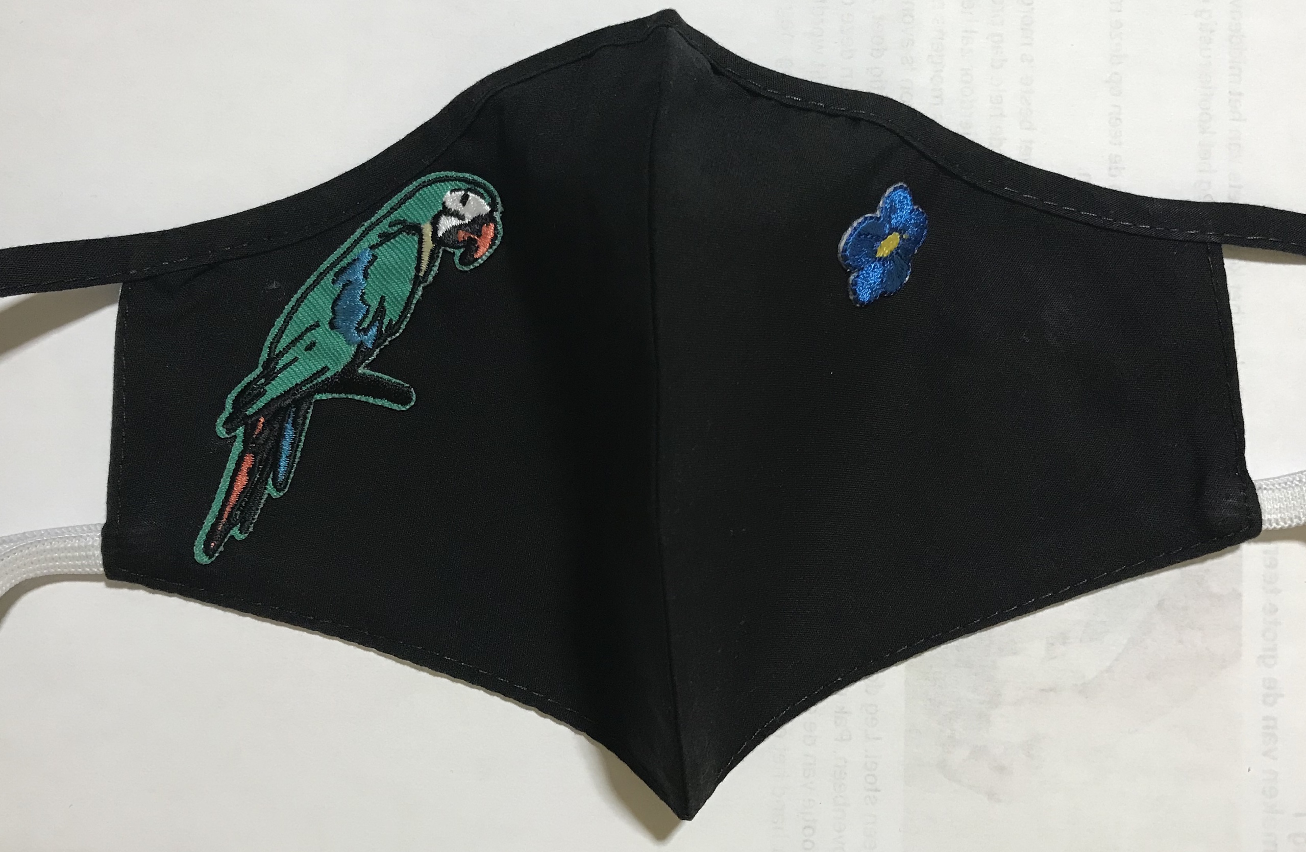 Zwart mondmasker met papegaai patch