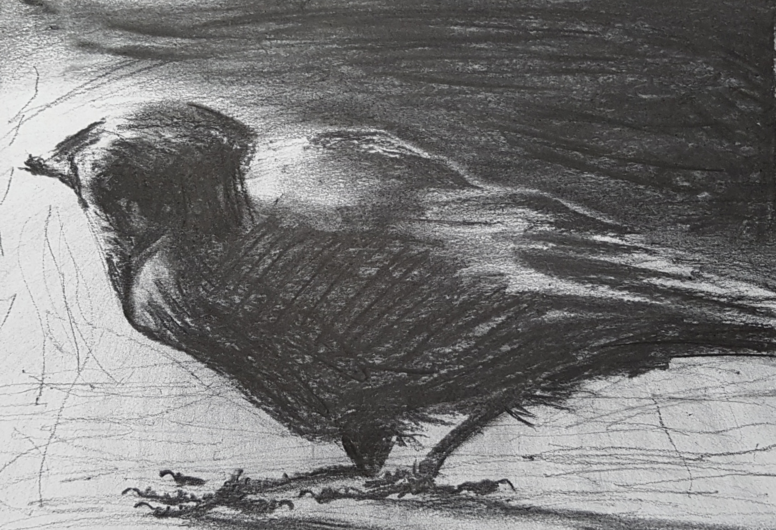 Zwart Vogel Tekening Houtskool Kauw Kauwtje Jackdaw Corvus Monedula Dohle