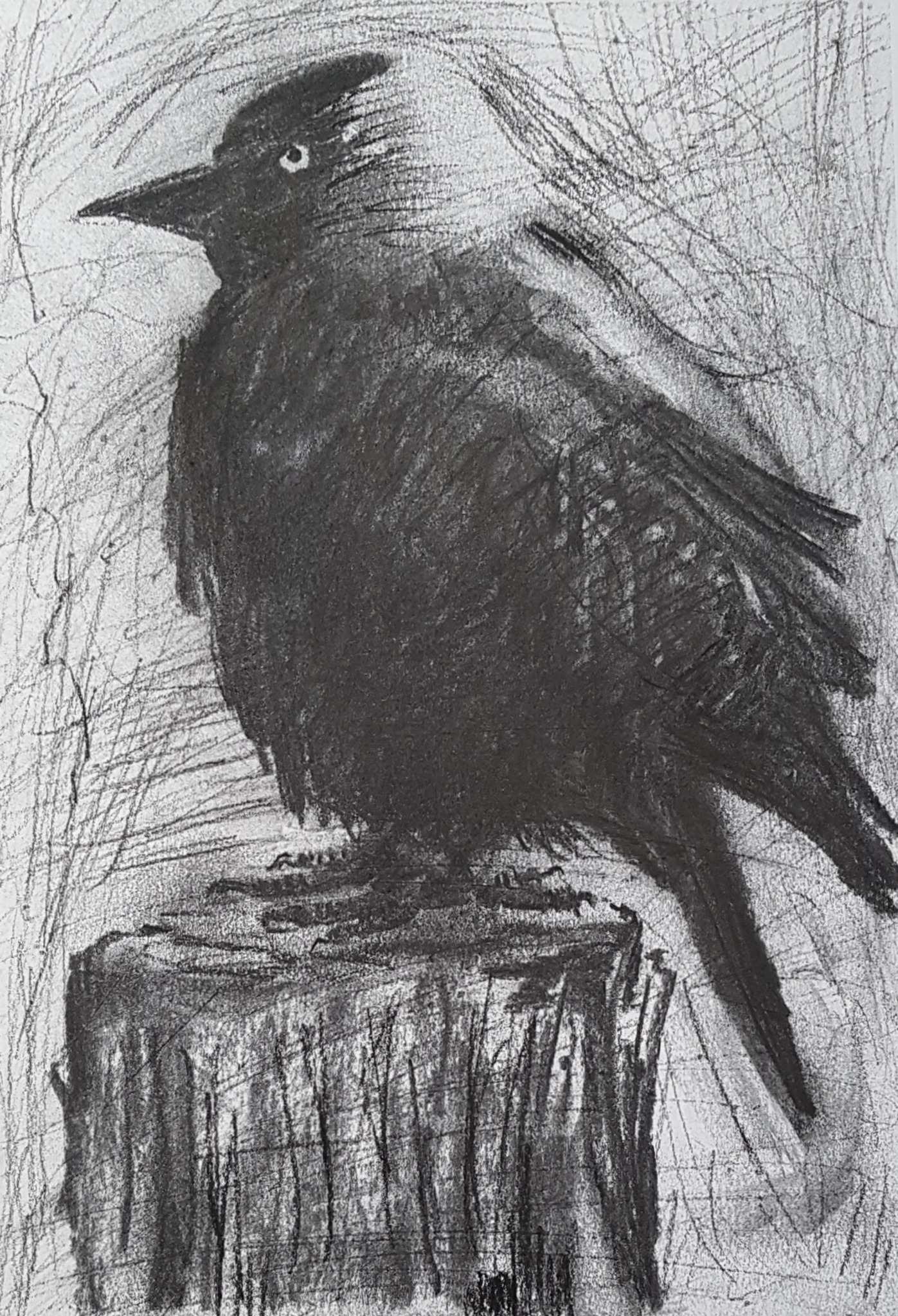 Zwart Vogel Tekening Houtskool Kauw Kauwtje Jackdaw Corvus Monedula Dohle