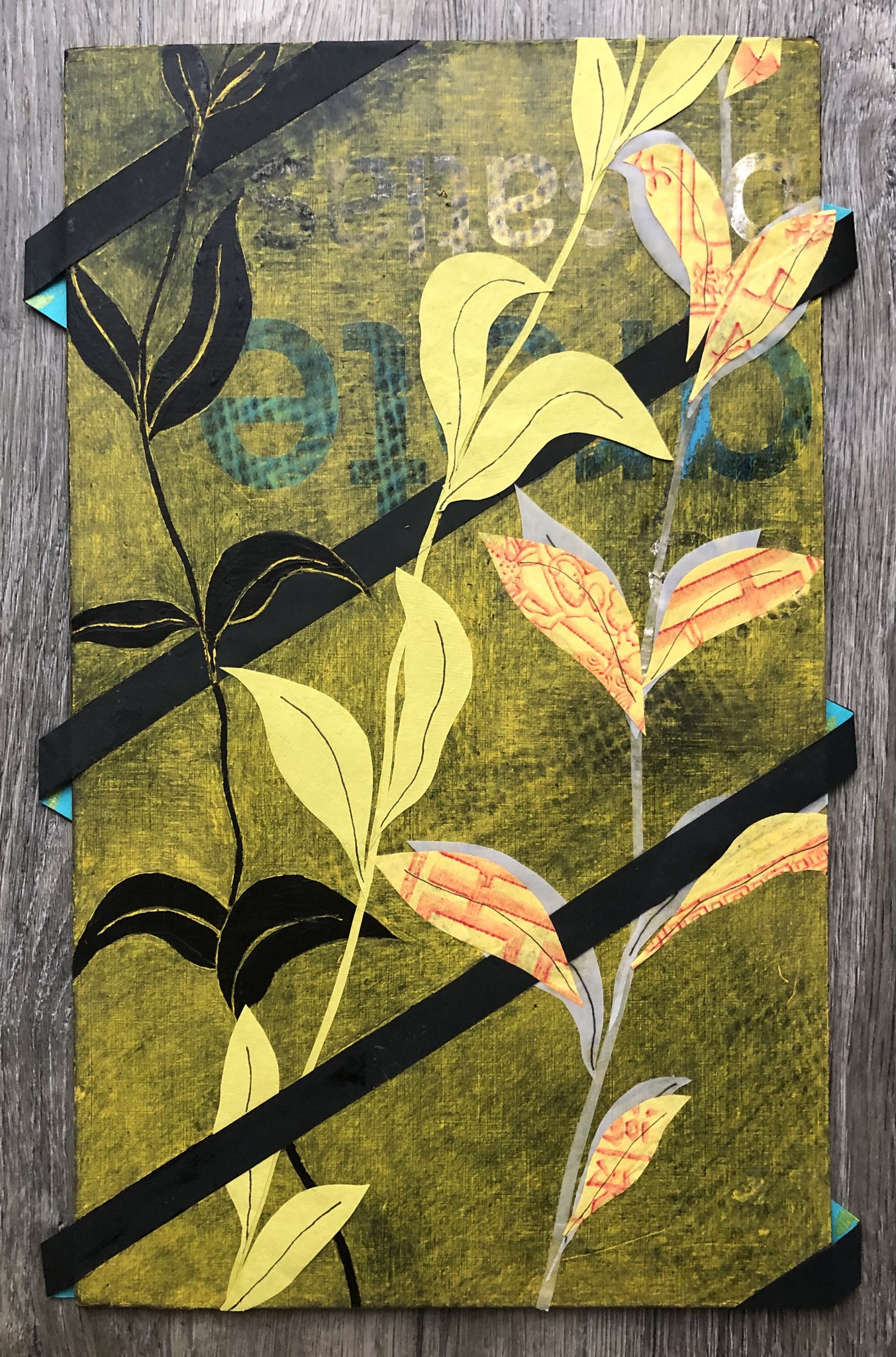Botanisch Strepen Papier Oliepastel Spuitverf Wegkrassen