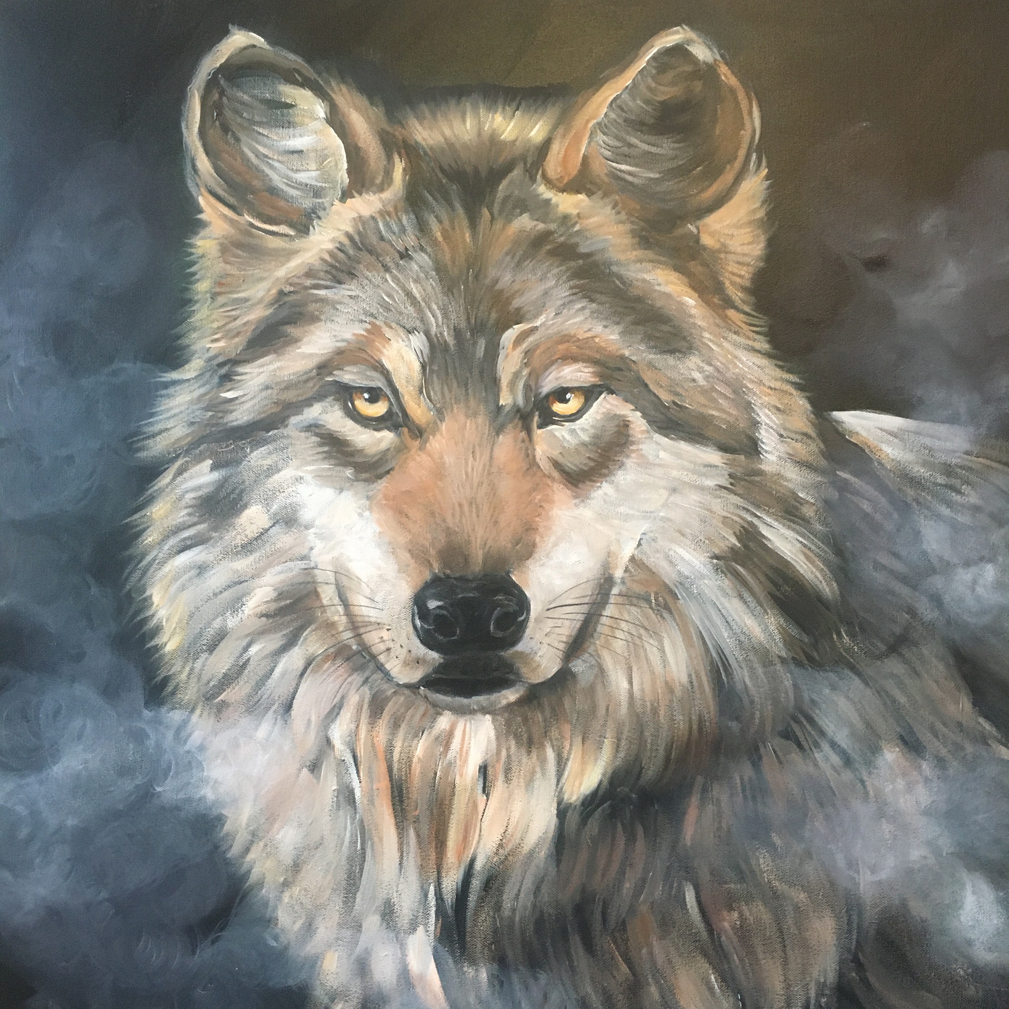 Wolf Hond Schilderij Acryl Acrylverf Zwart Landelijk