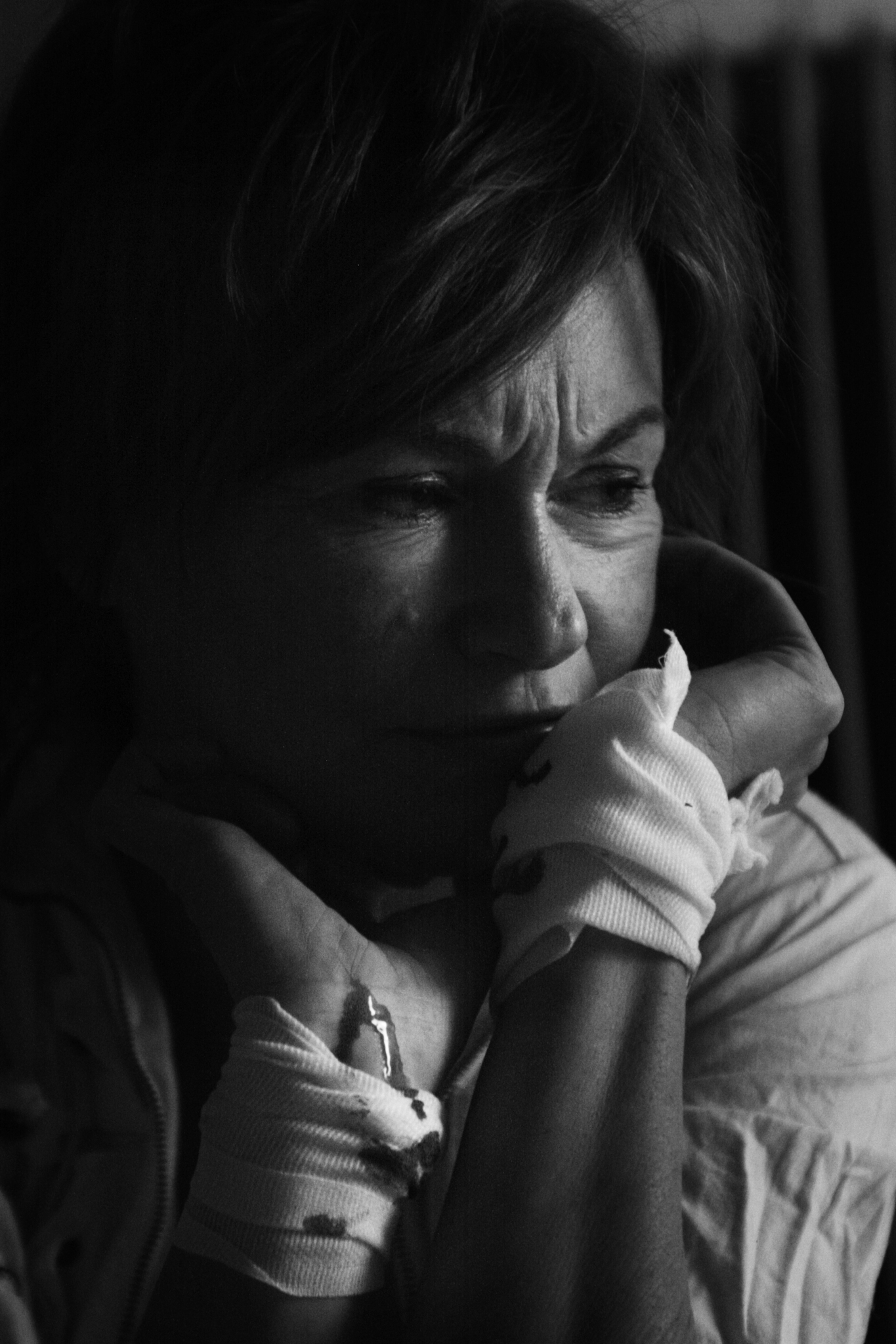 Werken op Dibond opgeplakt 60×90 cm en aan de voorzijde voorzien van Plexiglas. Achterzijde voorzien van ophangsysteem. Lost een verhalend thema vol emotie en dramatiek. Verloren en in zichzelf gekeerd. Verloren in het leven of het niet meer zien zitten. Zoveel!!
