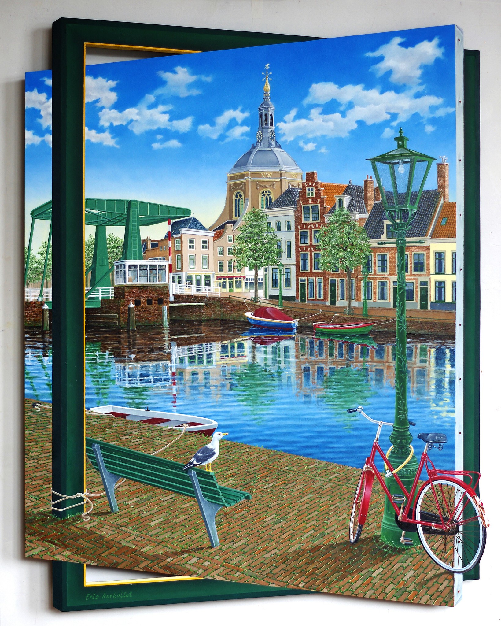 Kleurvaste, Kunstreproductie (GICLEE) van een van mijn olieverfschilderijen. Gesigneerd, genummerd en gemonteerd op een ingesneden stevige dunne foam ondergrond. Door een kleine verhoging met eenvoudig ophangsysteem aan de achterkant hangt de voorstelling iets los vande wand. Inlijsten is niet nodig Meer info ? : bij de kunstenaar. e.kerkvliet@ziggo.nl