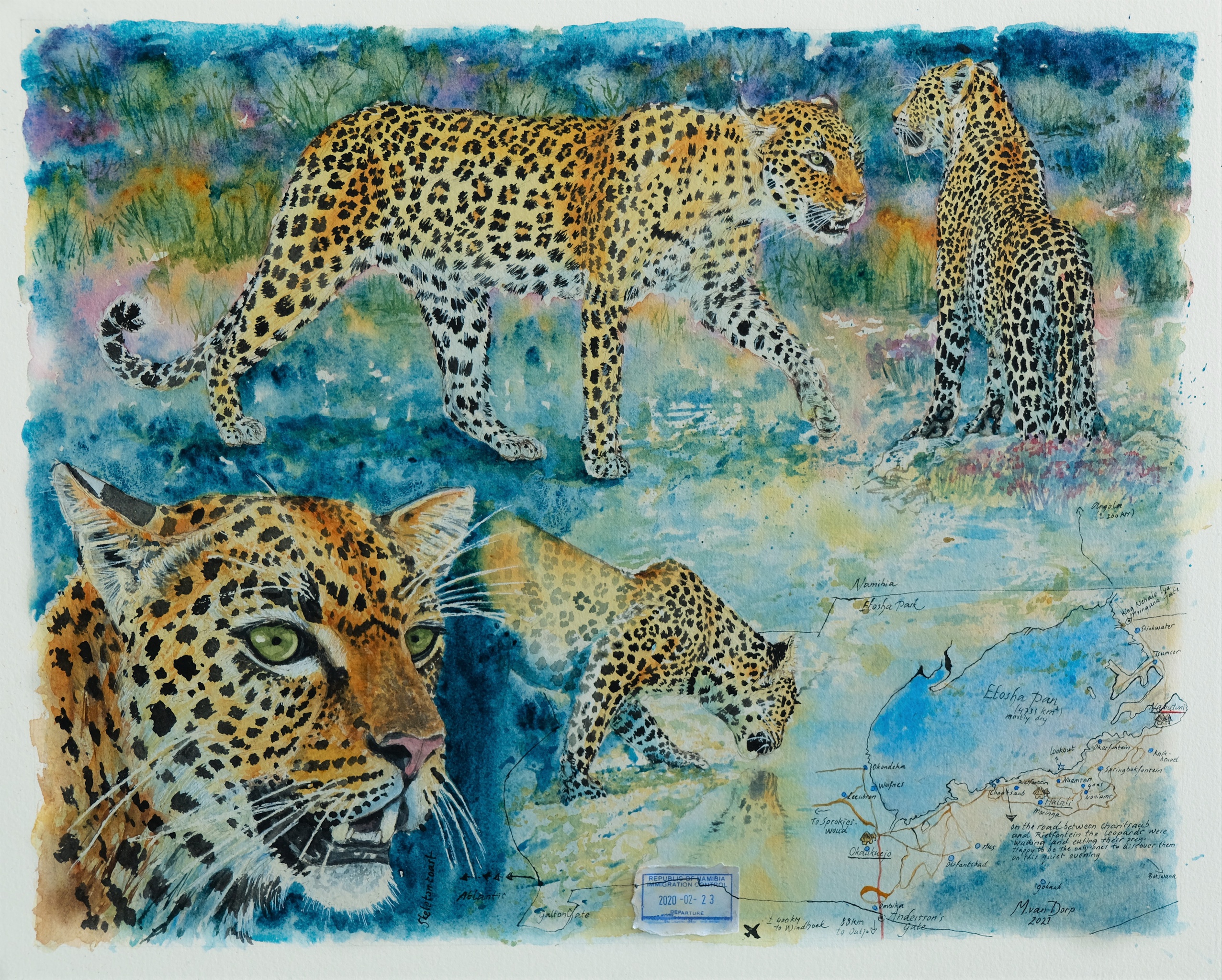 Wildlife Aquarel Tekening Luipaard Namibië Etoshapark