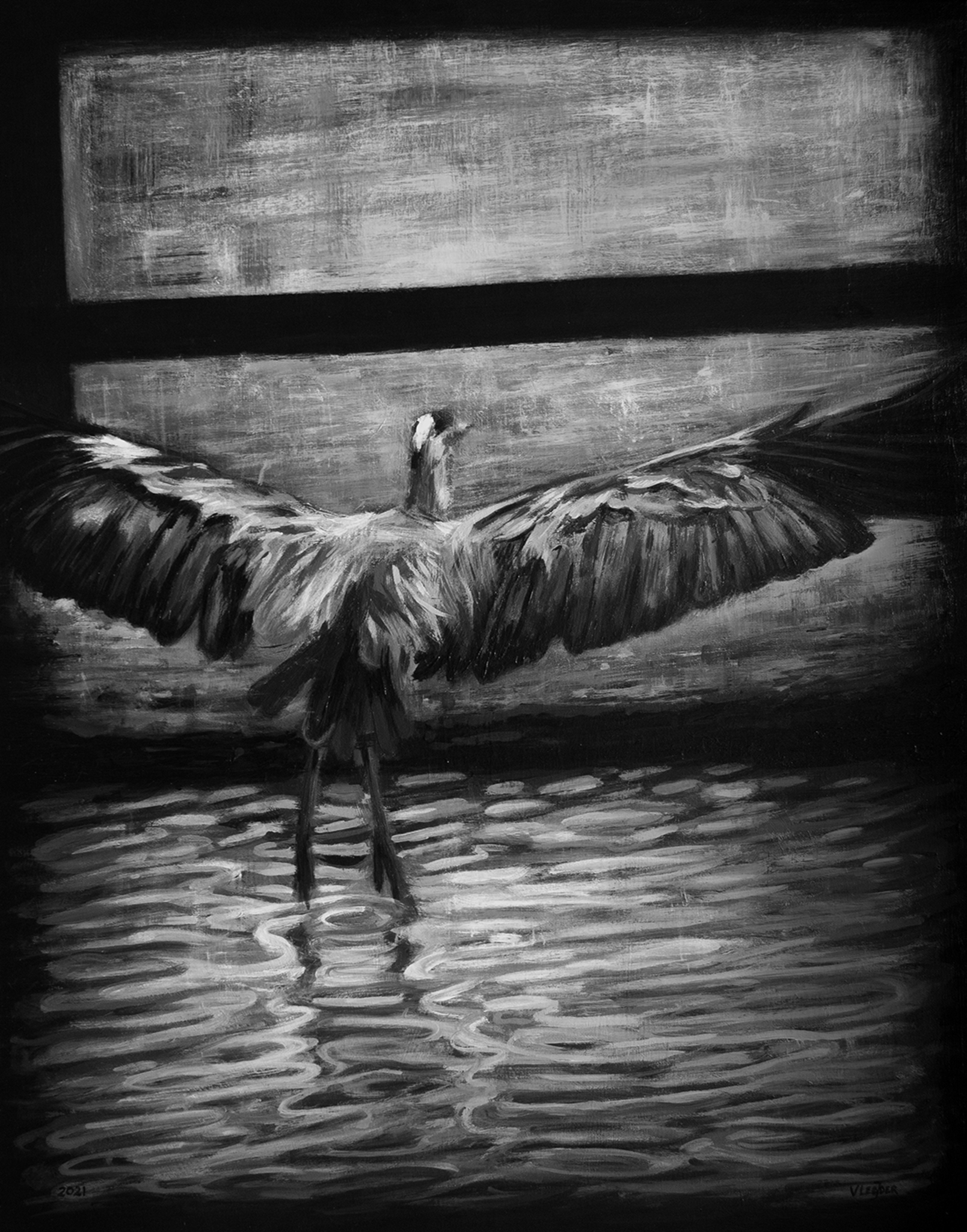 Kunst Schilderkunst Schilderijen Reiger Zwartwit Symbolisch Avontuur