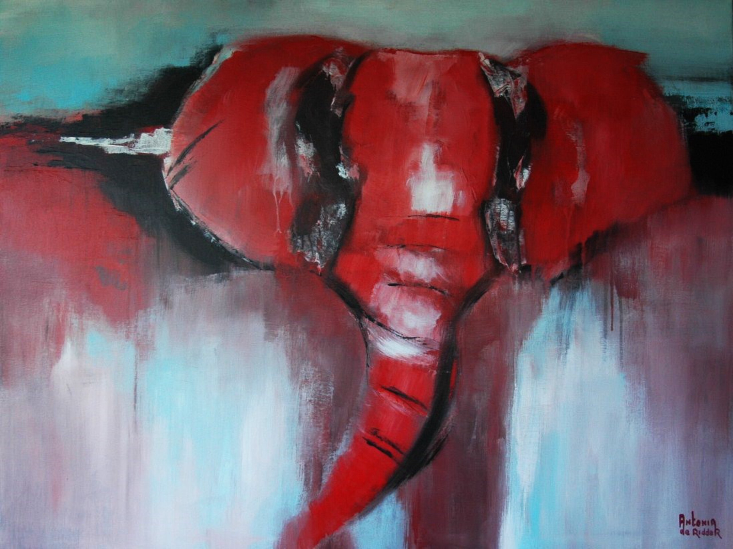 Acryl Olifant Geabstraheerd Rood/grijs/wit