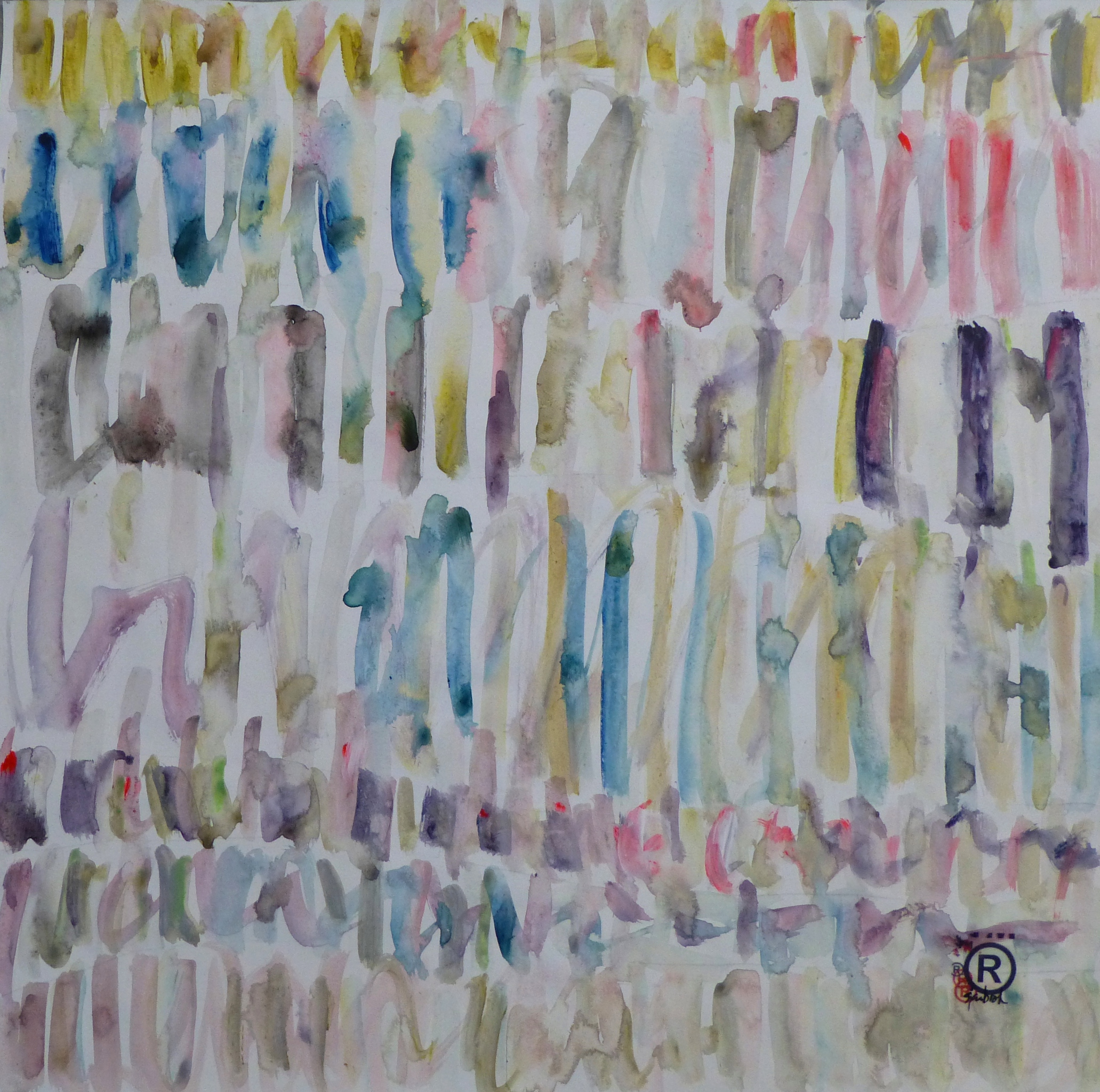 Abstract Dutch Acrylic Landscape On Paper Colour Field Plants