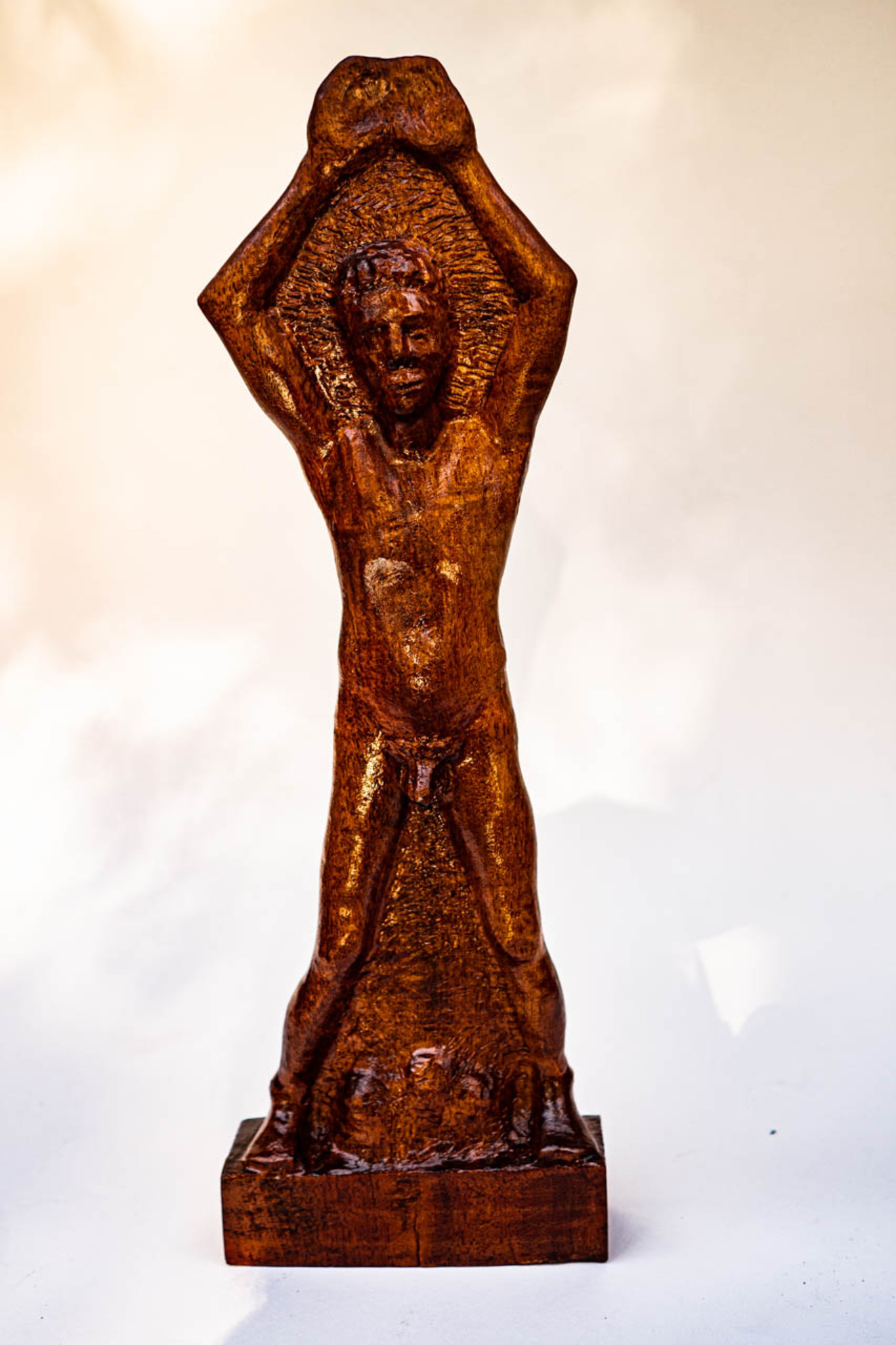 Sculptuur Sculpture Jongeling Youngster Naakt Naked Hout Wood Mahonie Mahagony