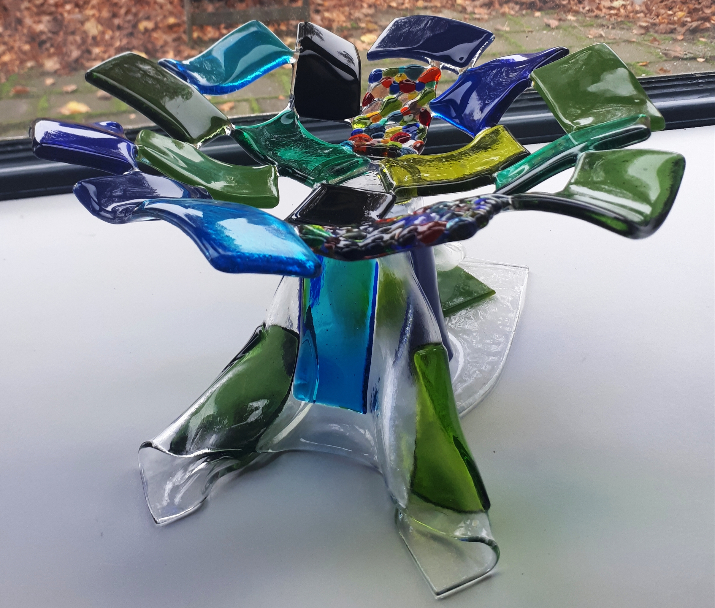 Blauw Groen Glas Blue Green Glasfusie Glass Glassfusion Bokaal Scheltema Bullseyeglass Louky Loukyscheltema Goblet