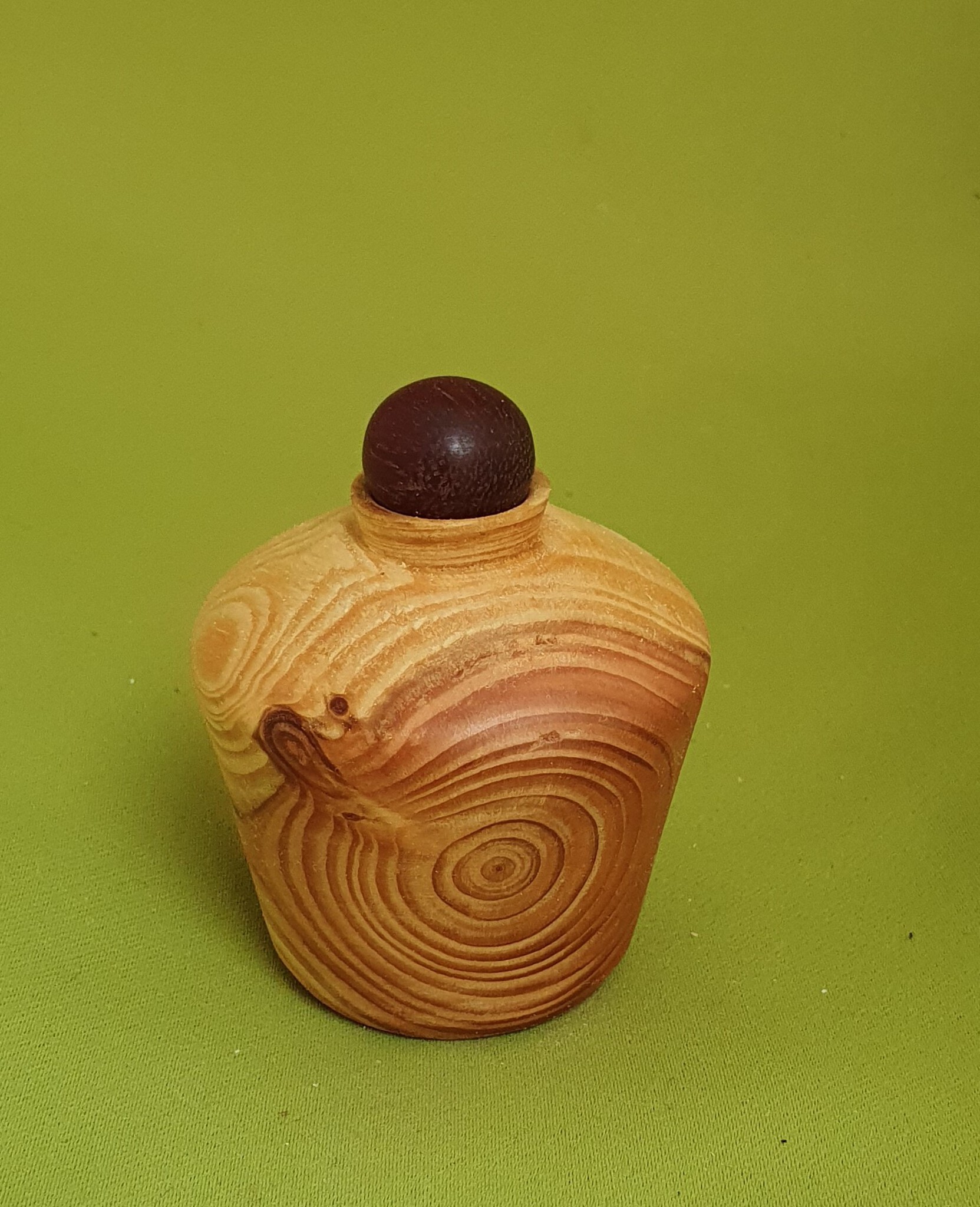 Verkocht. Klein maar fijn. De kenmerkende tekening van de lariks maakt het draaien van zo'n doosje tot een feest. Deze keer heb ik gekozen voor een afsluitdopje van padoek (Afrikaanse houtsoort die van dieprood tot donkerbruin in de kern is).