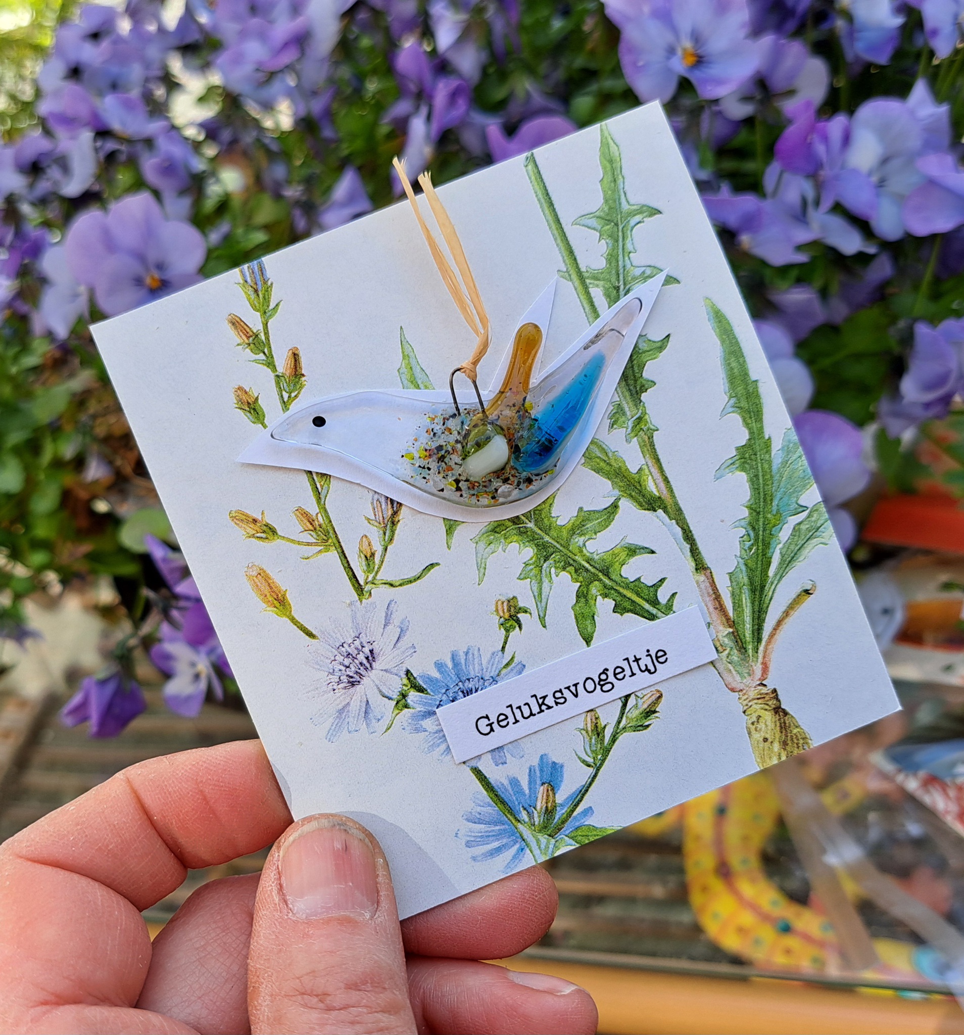Glaskunst Geluk Glasdesign Glasfusie Kadootje Aandenken Raamhanger Geluksvogeltje