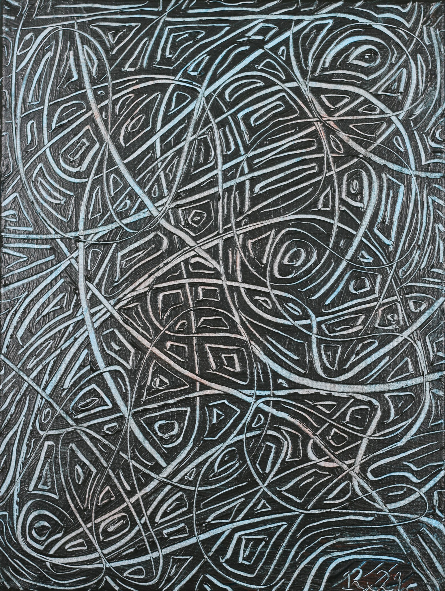 René Roovers In 1975 geboren te Nuland, provincie Brabant. Roovers is autodidact en laat zich zo min mogelijk beïnvloeden door andere kunstenaars. Dit om zo vrij mogelijk te kunnen werken. In zijn geometrisch geïnspireerde abstracte en half-abstracte schilderstukken probeert hij extra accenten aan te brengen door met reliëf te werken. Vormen, kleuren en contrasten fascineren hem. Zijn manier van werken: Het laag voor laag aanbrengen van "puzzelstukken" die moeten leiden naar een bevredigend eindresultaat. Zijn doel is: Het vasthouden van de aandacht en het op zoek gaan naar de intentie van het kunstwerk. Kunst zien heb ik van mijn vader. Kunst maken van mijn moeder.