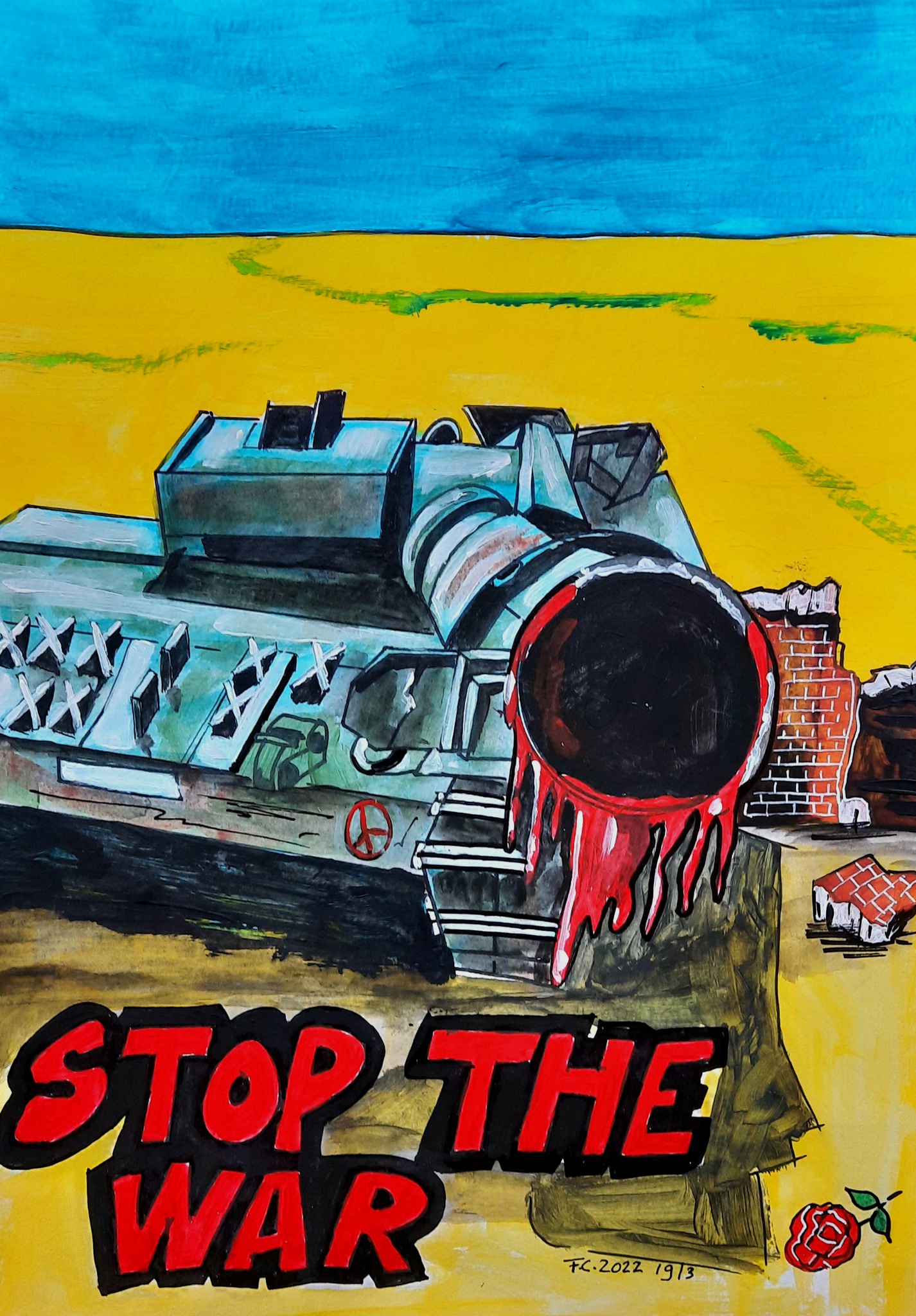 Bloed Hoop Oorlog Vrede Geweld Mixedmedia Popart Tank Puin Oekraïne