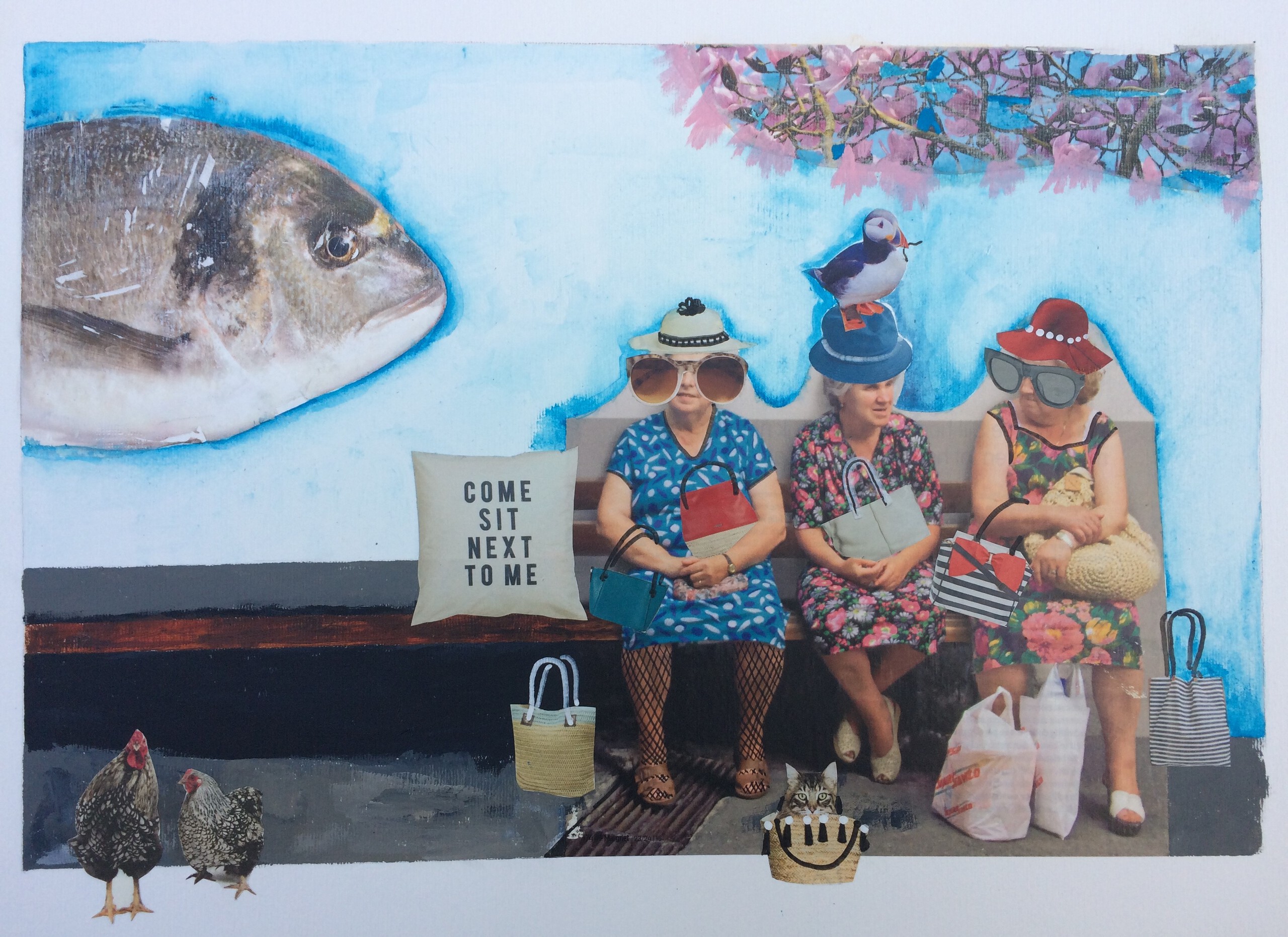 Vis Oudere Vrouwen Kippen Collage Acryl Humor