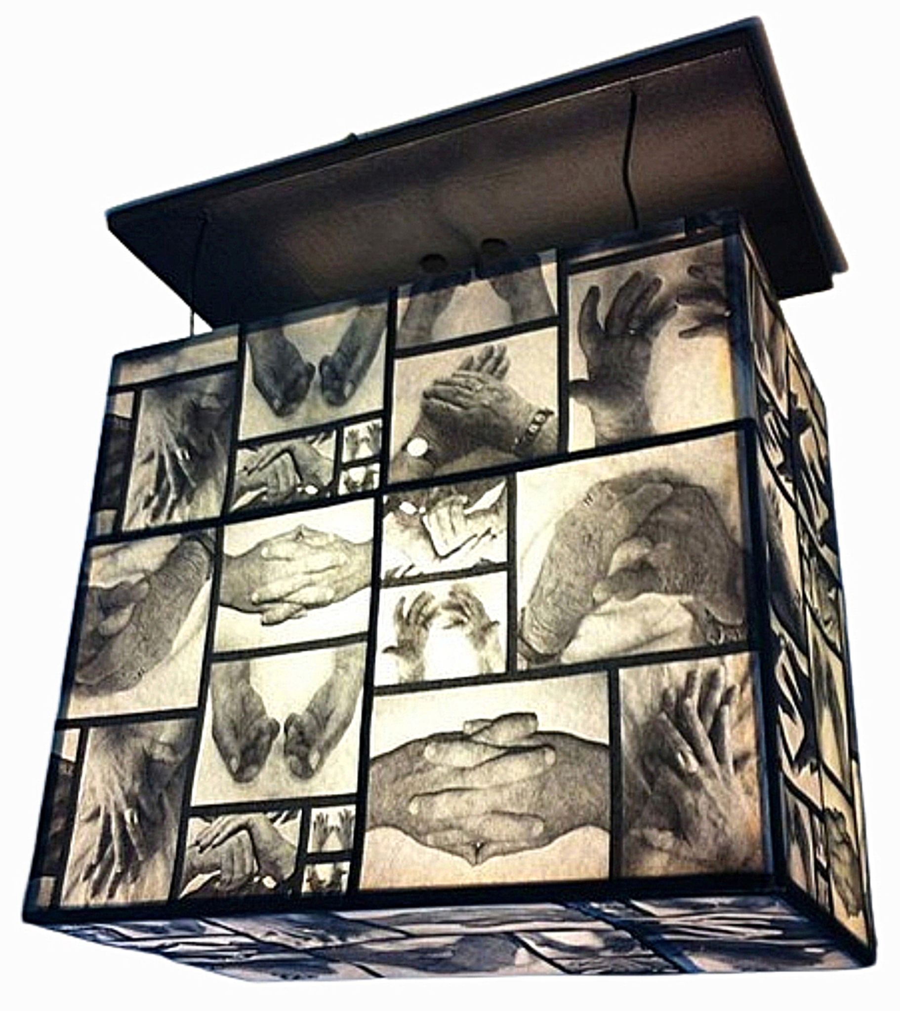 Lamp hands, handen van naasten geprojecteerd op lamp.