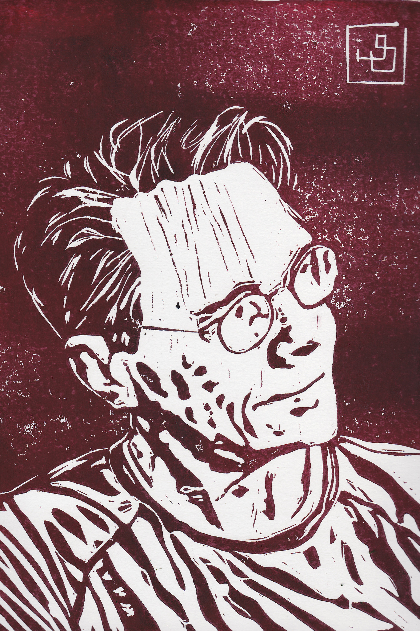 Linocut Lino Linosnede Portret Grafiek Grafisch Hoogdruk