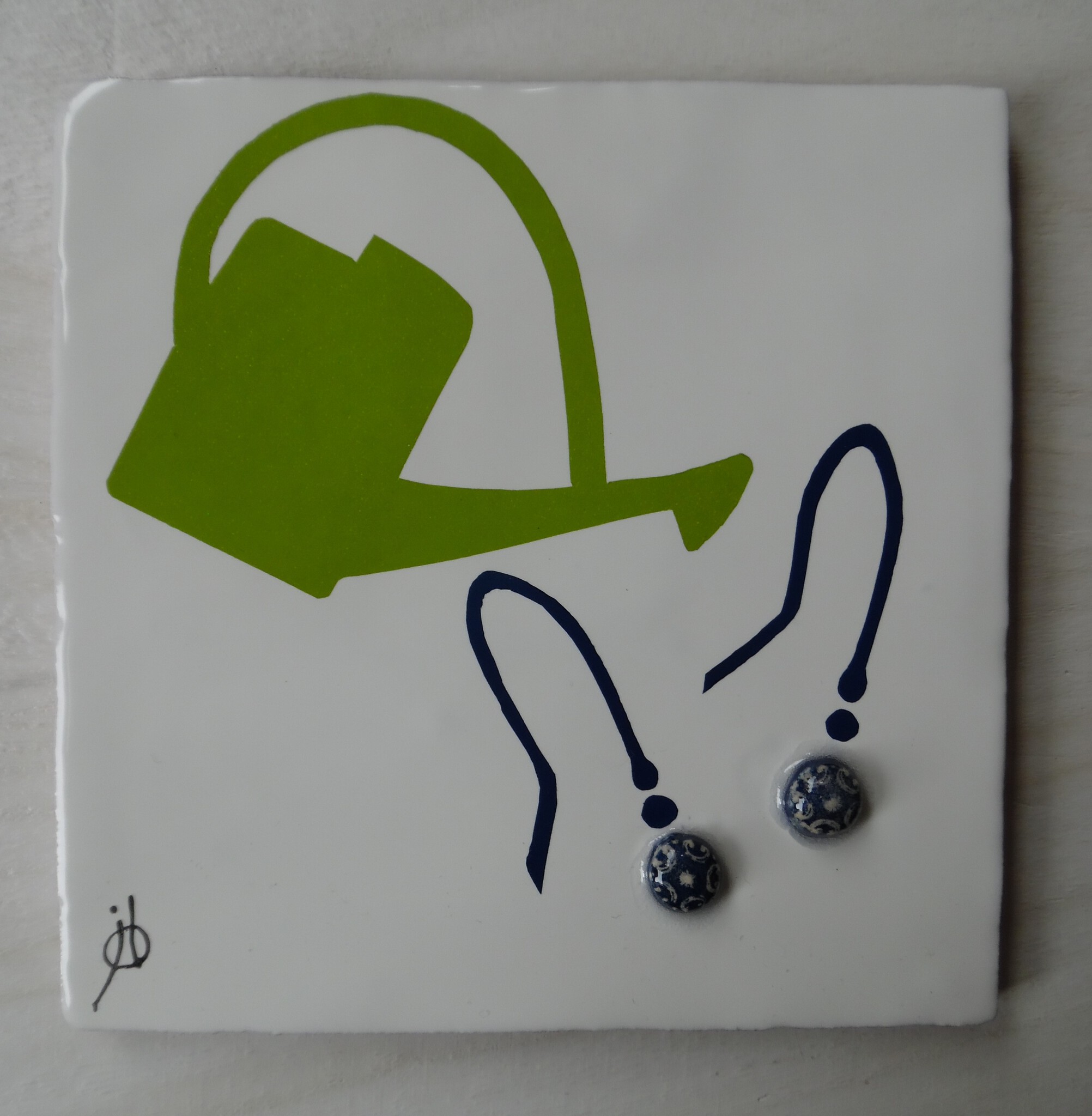 " Een kleur wordt gevoel, een vorm een gedachte. " Waarom tegeltjes? Deze zijn duurzaam, decoratief en vertrouwd. De uitdaging is ambachtelijke technieken in te zetten voor een beeldtaal. Een beeld dat een feest der herkenning wordt! " hooked" tegelgram mei 2019 oude aardewerk tegel met zeefdruk.