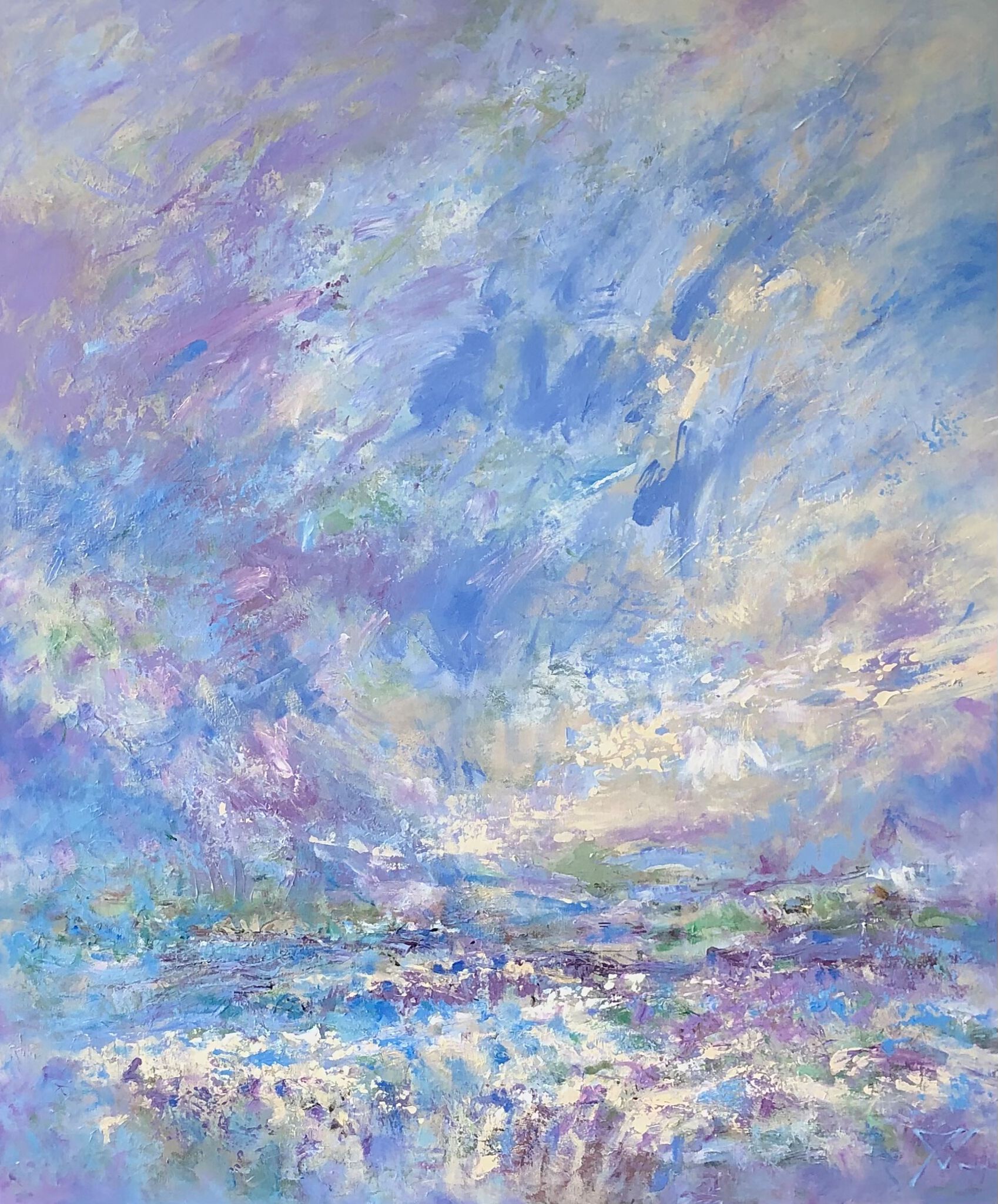 Schilderij Abstract Landschap Pastelkleuren Acryl Licht Painting Schilderijen Air Sfeer Zomer Zacht Zeegezicht Summer Space Abstracte Dromerig Freedom Impressionistisch Zeegezichten Nature Landschappen Landscapes Monet Views
