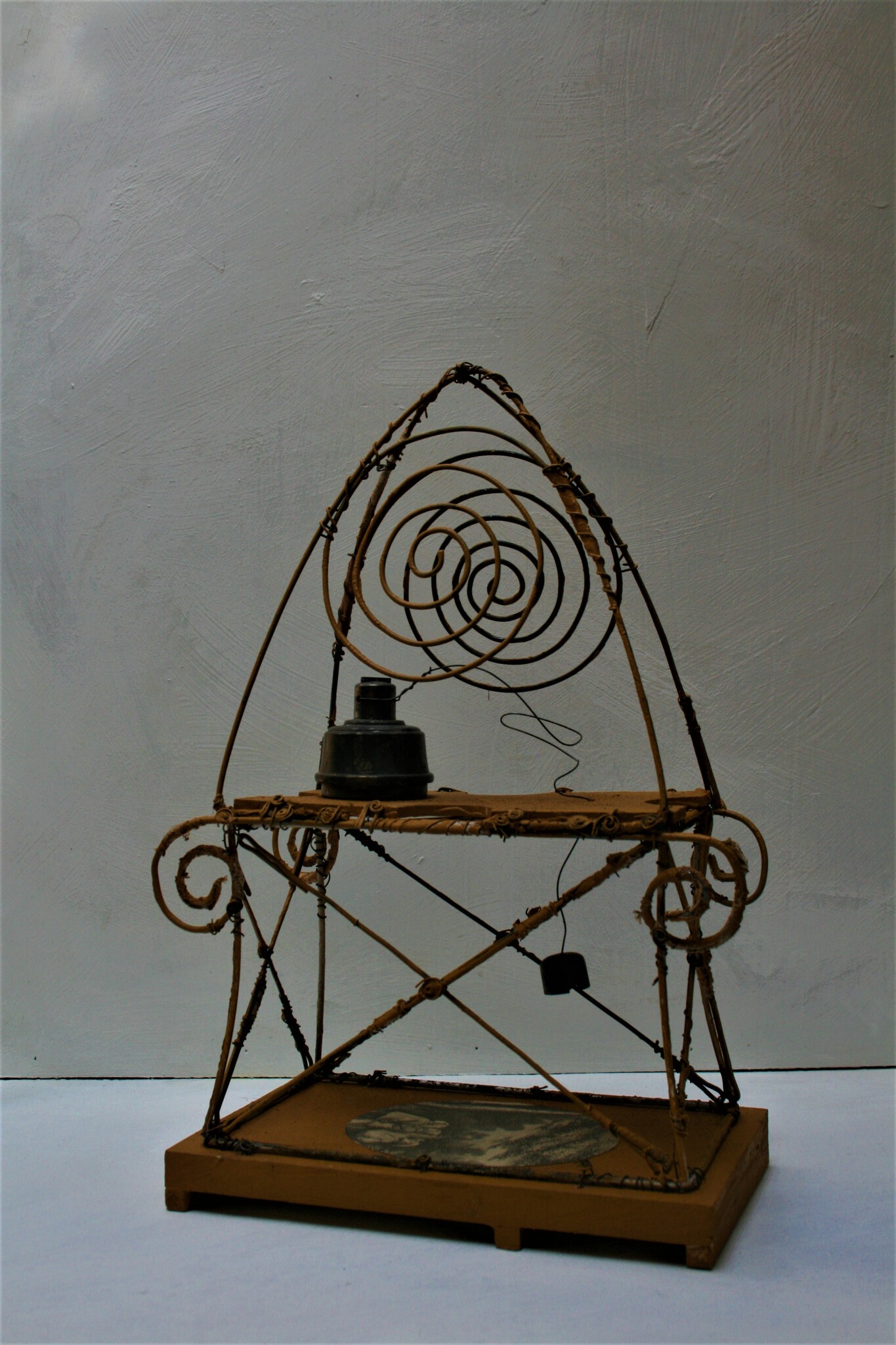 fragment, afval, ijzerdraad, hout, acrylverf