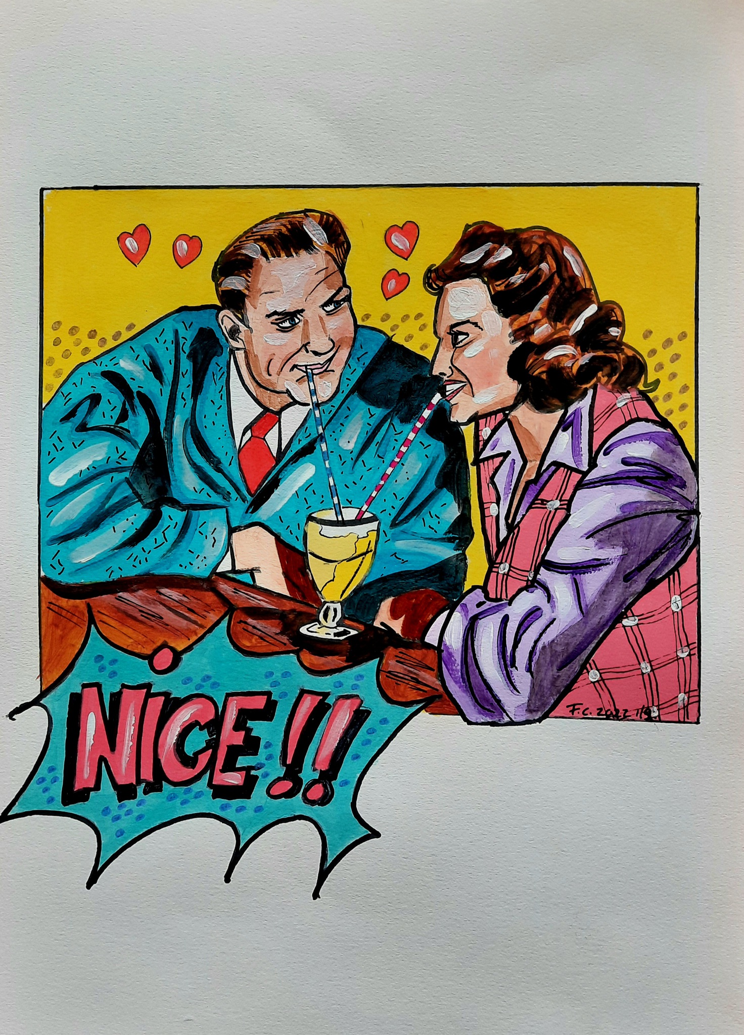 Vrouw Man Mixedmedia Popart Lovers 50s Milkshakes
