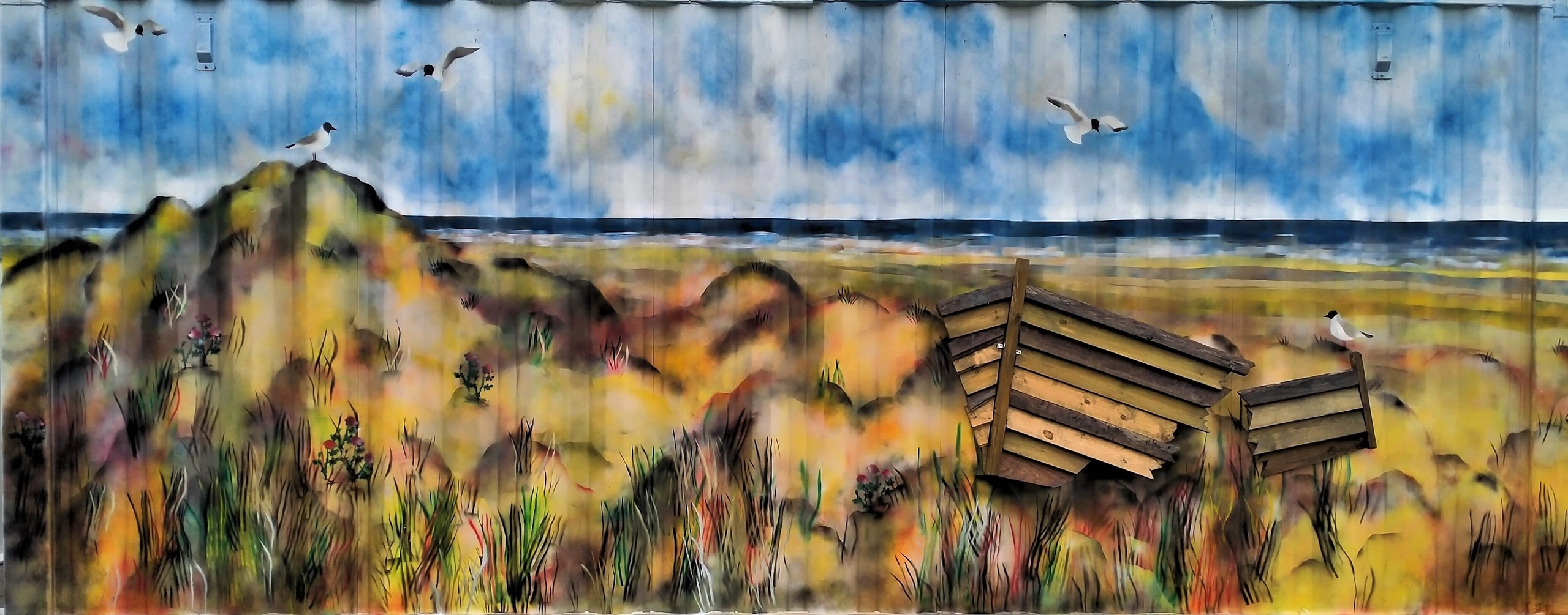 Zeecontainerkunst Zeecontainer Opdracht Spuitverf Zeegezicht