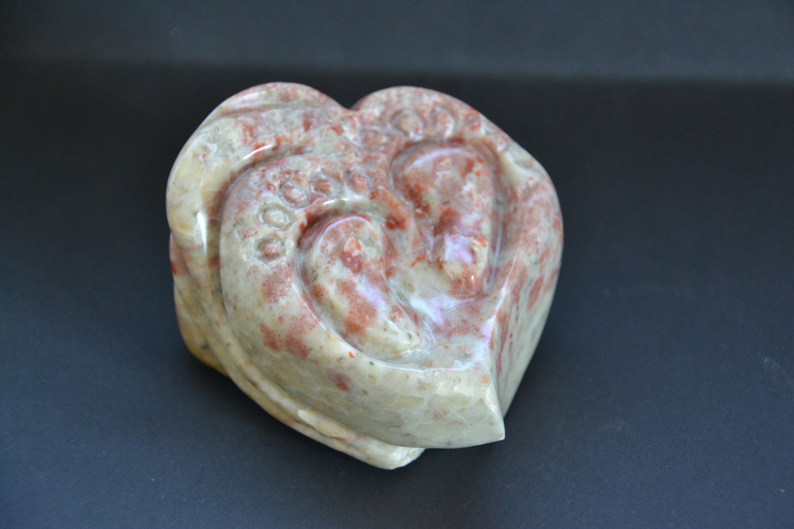 Babyvoetjes in hartvorm van roze/wit speksteen