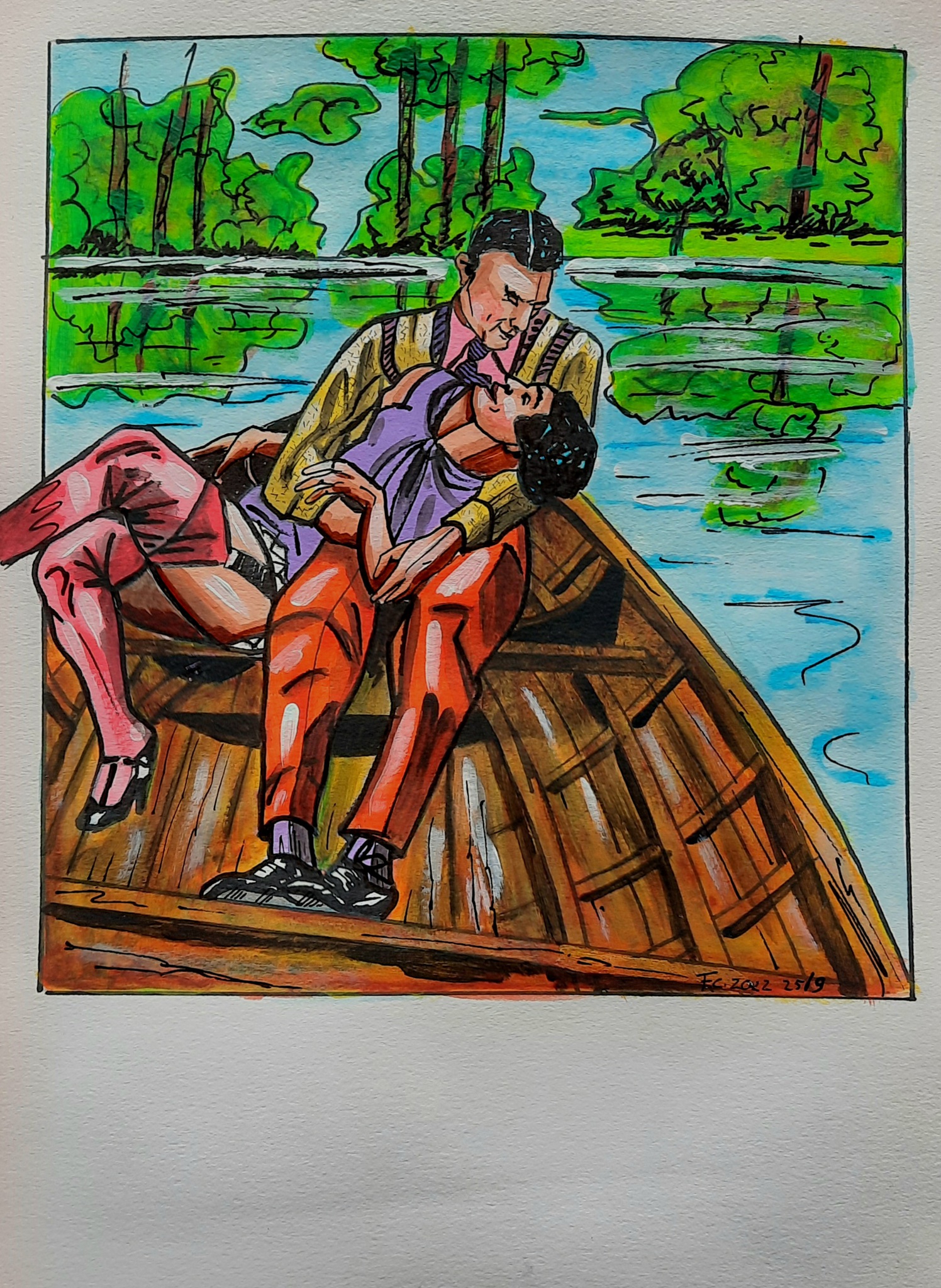 Romantiek Vrouw Man Water Natuur Erotiek Boot Mixedmedia Popart Lingerie Vintage Liefdespaar 30s 20s