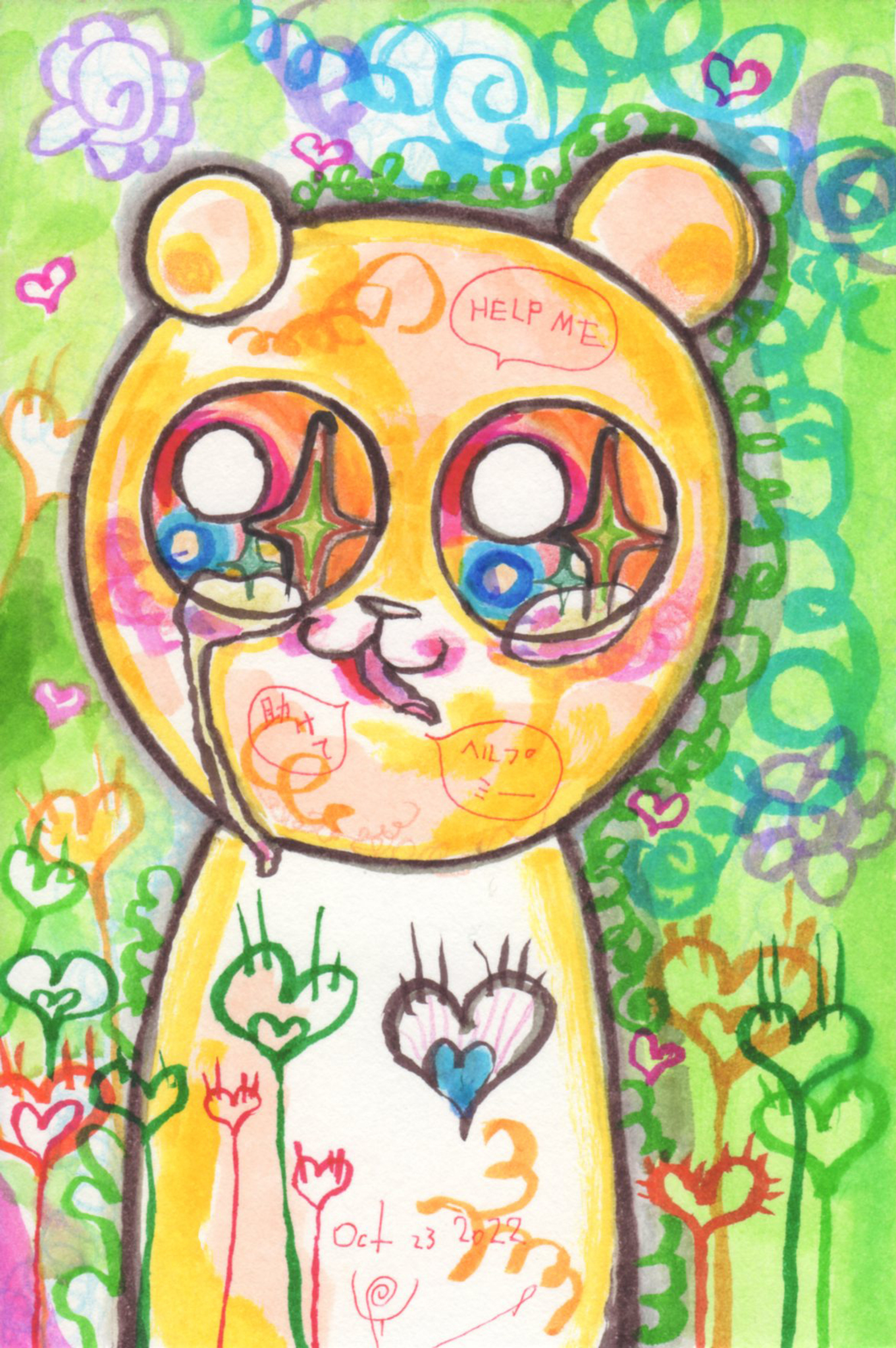 Yoko Fukasawa was born in 1982. 2001-Japan traditional craft department,Metal crafts major 2001-Volkswagen new Beetle - art contest The third place. 2002-TOKYO DOME - Tableware festival Fine work. 2017-And Schizophrenia has been revealed. Her paintings are outsider art. They are characterized by simple shapes and bright colors. She wants you to look at them and relax.