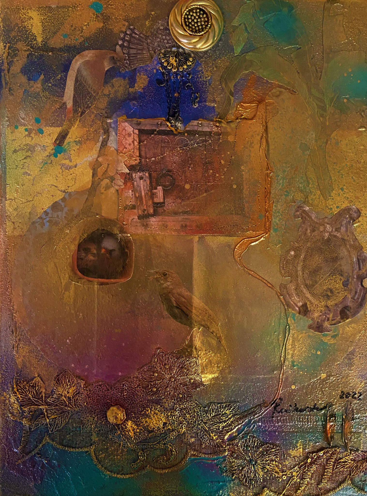 Art Mixed Media Collage Paper Assemblage Poetry Alhambra Goldleaf Handmade Andalucia Watercolors Monuments Decorations Panels Rich Wealth Experimental Visuel Richesse