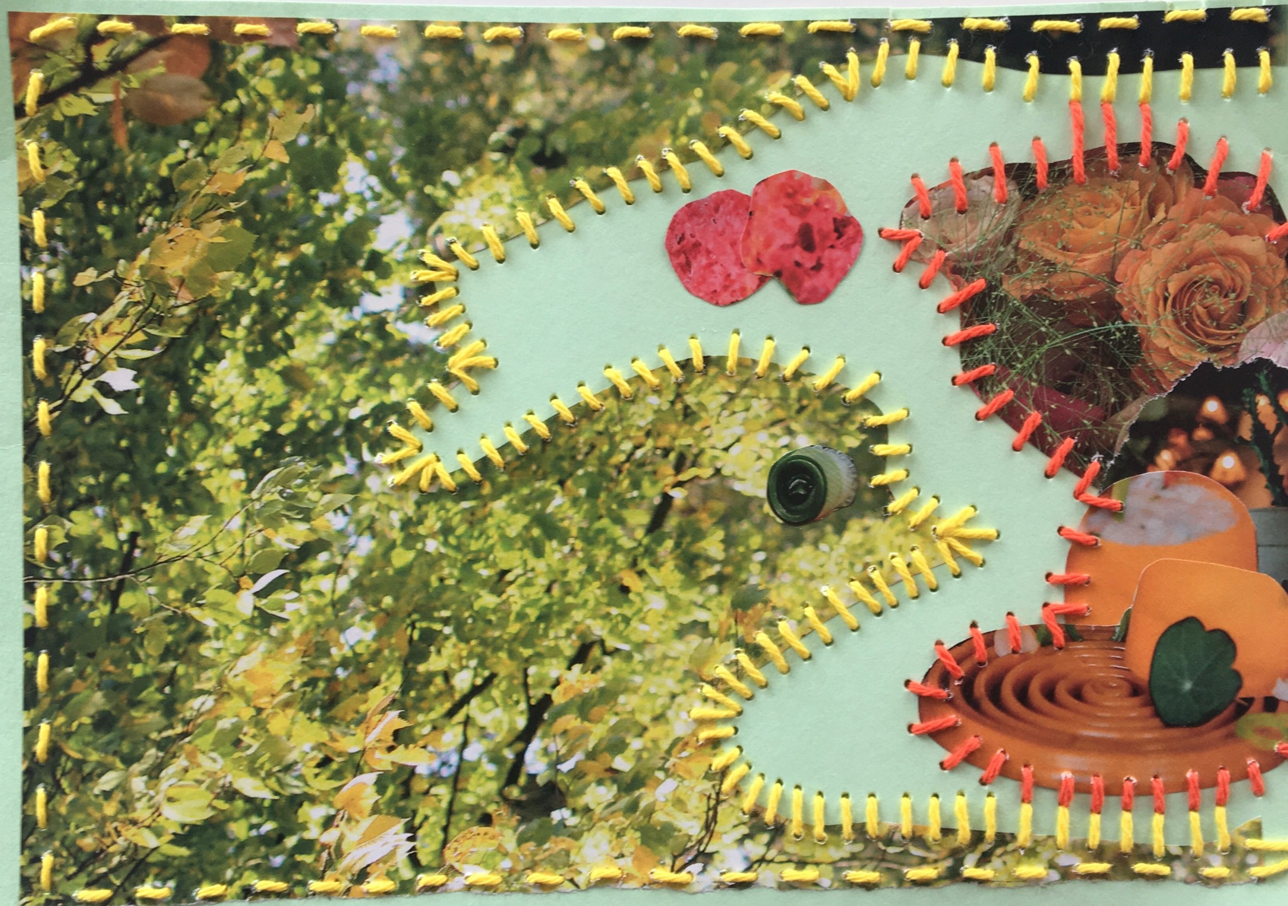 Surreeel Oranje Geel Vogel Spiritueel Groen Kleurig Papier Rozen Bladeren Flow Verhalend Collage Oog Papierkunst Spiegel Positief Intuïtief Kunstenaar Bewegend Lijm Boodschap Schaar Gezichtje Papierkunstenaar
